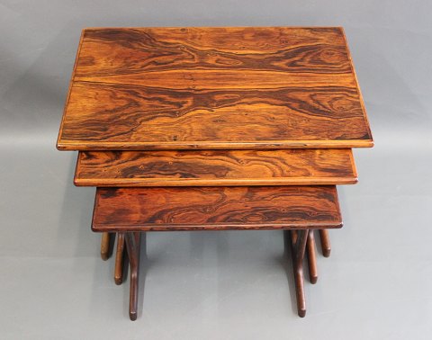 Sold3 nestling tables in rosewood from the 1960s in Danish design.