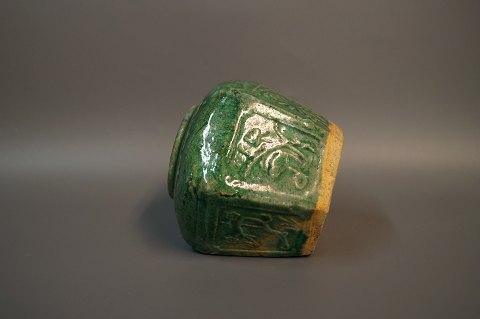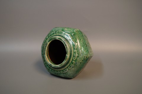 Edged ceramic vase with dark green glaze from the 1960s by an unknown ceramic artist.