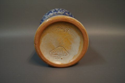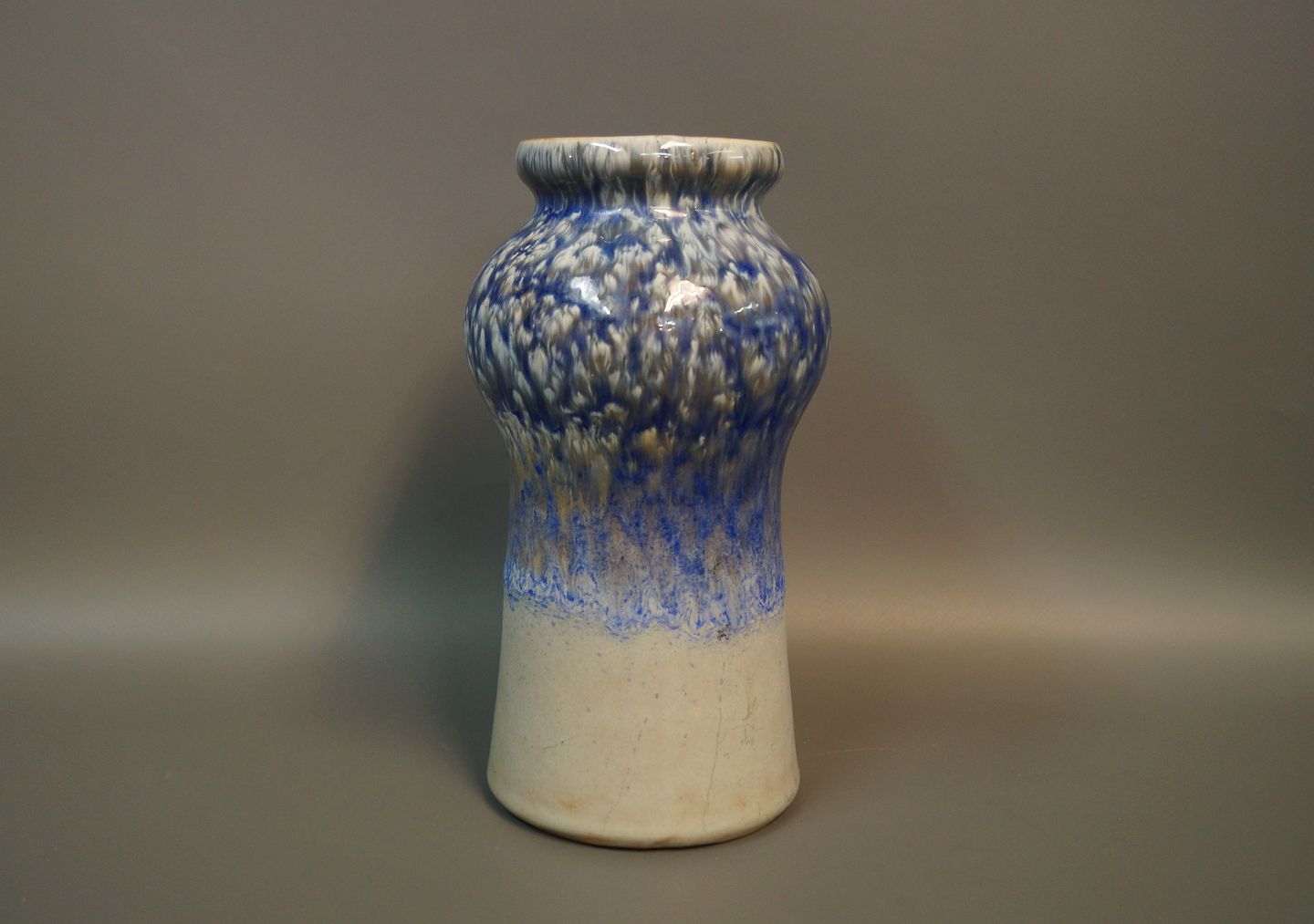 Ceramic vase with light blue and White glaze from Strehla - GDR with the number 1437.