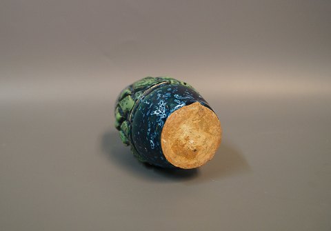 Keramik vase med mørkeblå og grøn glasur fra 1960erne af en ukendt keramiker.