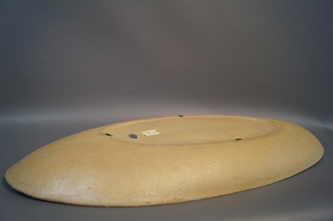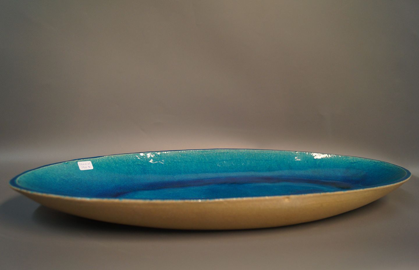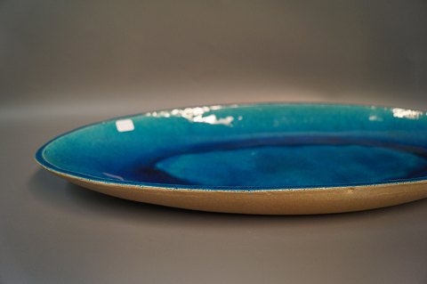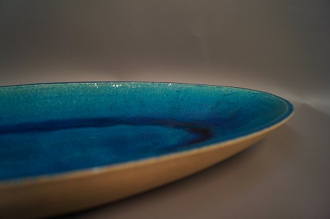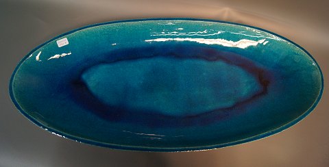 Large oblong ceramic dish with blue glaze by Hermann A. Kähler.