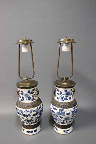 SoldA pair of Chineese porcelain table lamps from around the 1920s. The table lamps are beautifully painted and stamped with a chineese stamp on the bottom.