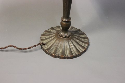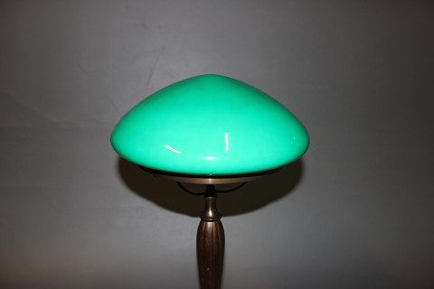 SolgtHøj bordlampe i bruneret messing og mørkegrønt glas kuppel. Lampen er i Jugendstil fra 1920erne.