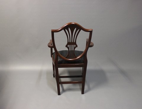 SolgtEt par heppelwhite armstole i poleret mahogni og polstret i sort stof. Stolene er fra England og 1920erne. Bord i samme stil kan også købes, billeder kan sendes hvis ønsket.
