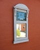 SolgtLille gråmalet spejl i gustaviansk stil fra 1810. Spejlet er udsmykket med et lille maleri i toppen.