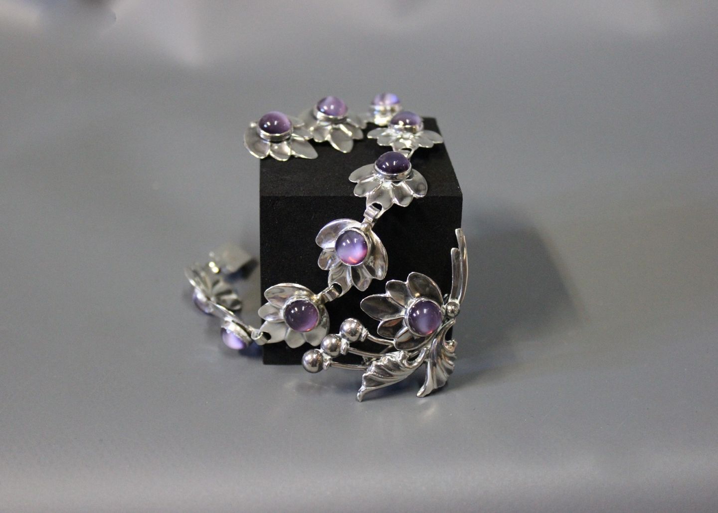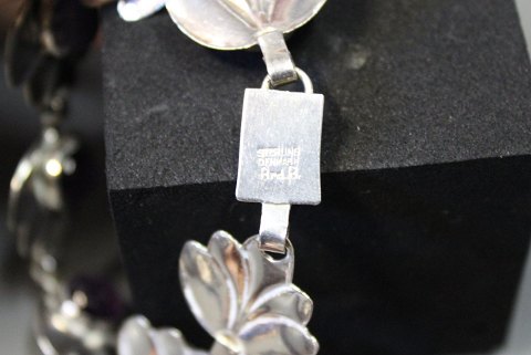 Armbånd, Øreringe samt broche i sterling sølv med lilla sten fra Brd. B.