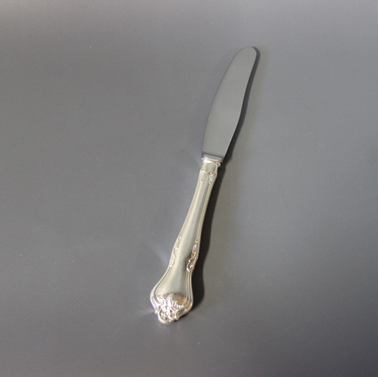 SolgtMiddagskniv i Riberhus, sølvplet.