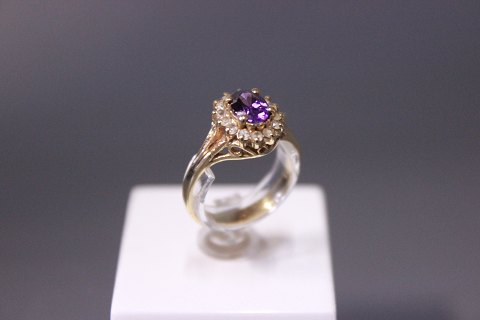 Ring i 14 kt. guld med ametyst og zirkoner.