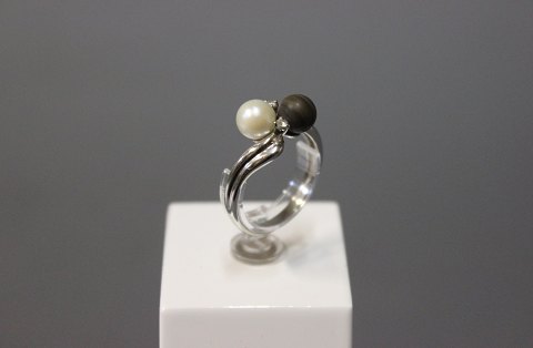 Ring i 14 kt. hvidguld med 2 kulturperler (0,2 cm).