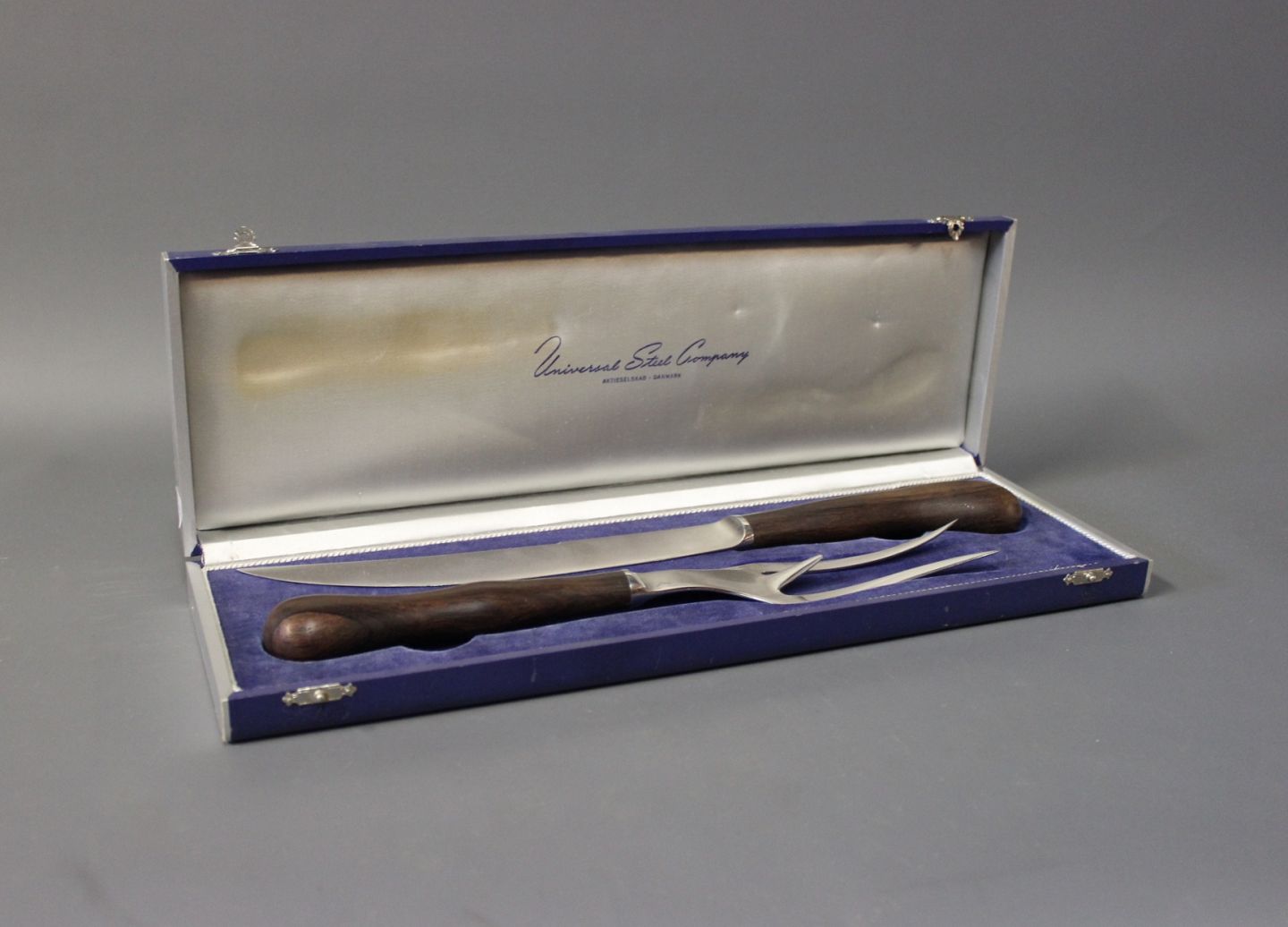 SoldCarving set by Kay Bojesen, in great condition. The set was manufactured at Universal Steel Company USA.