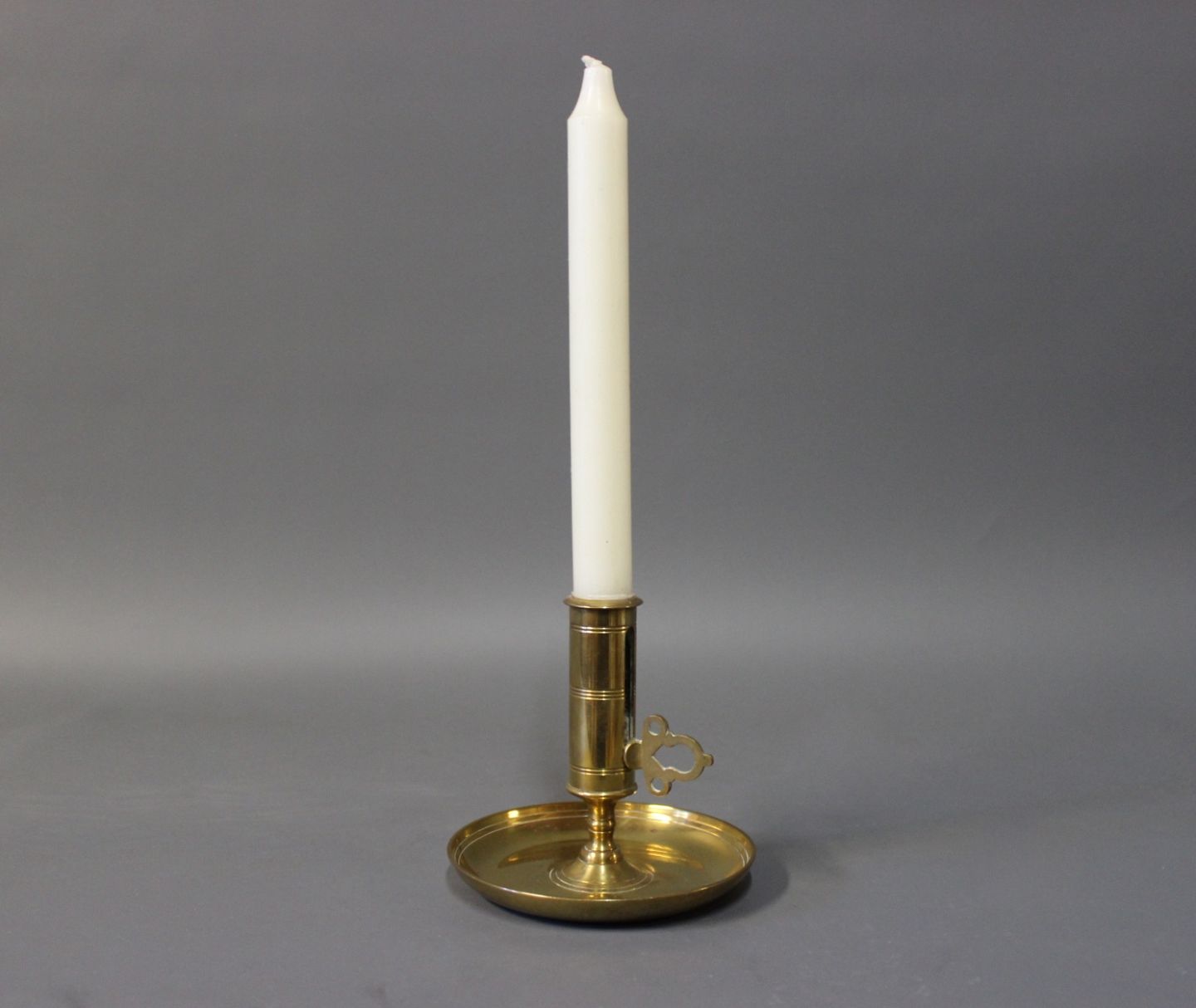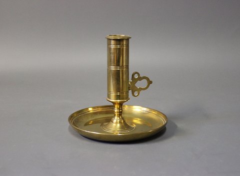 Flat candlestick in brass from the year 1880. It has been repaired and is of good quality.