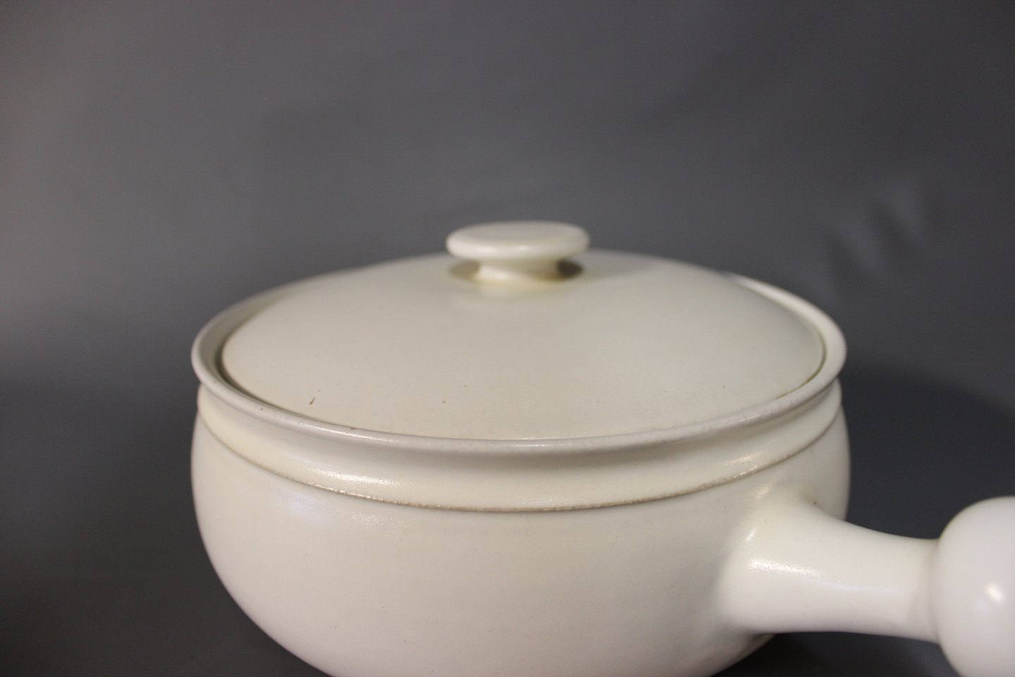 Hvid keramik serveringsskål med låg af Herman A. Kähler.