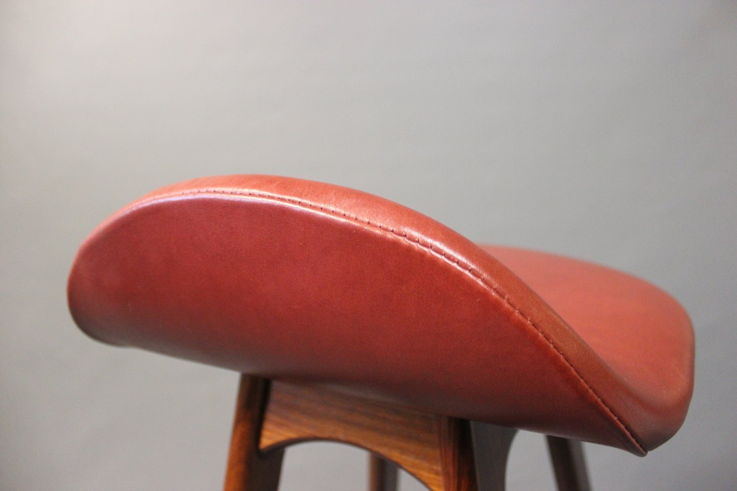 Bar stools, model OD61, designed by Erik Buch and manufactured by Odense furniture factory. The stools are of rosewood and newly upholstered seats of elegance leather.