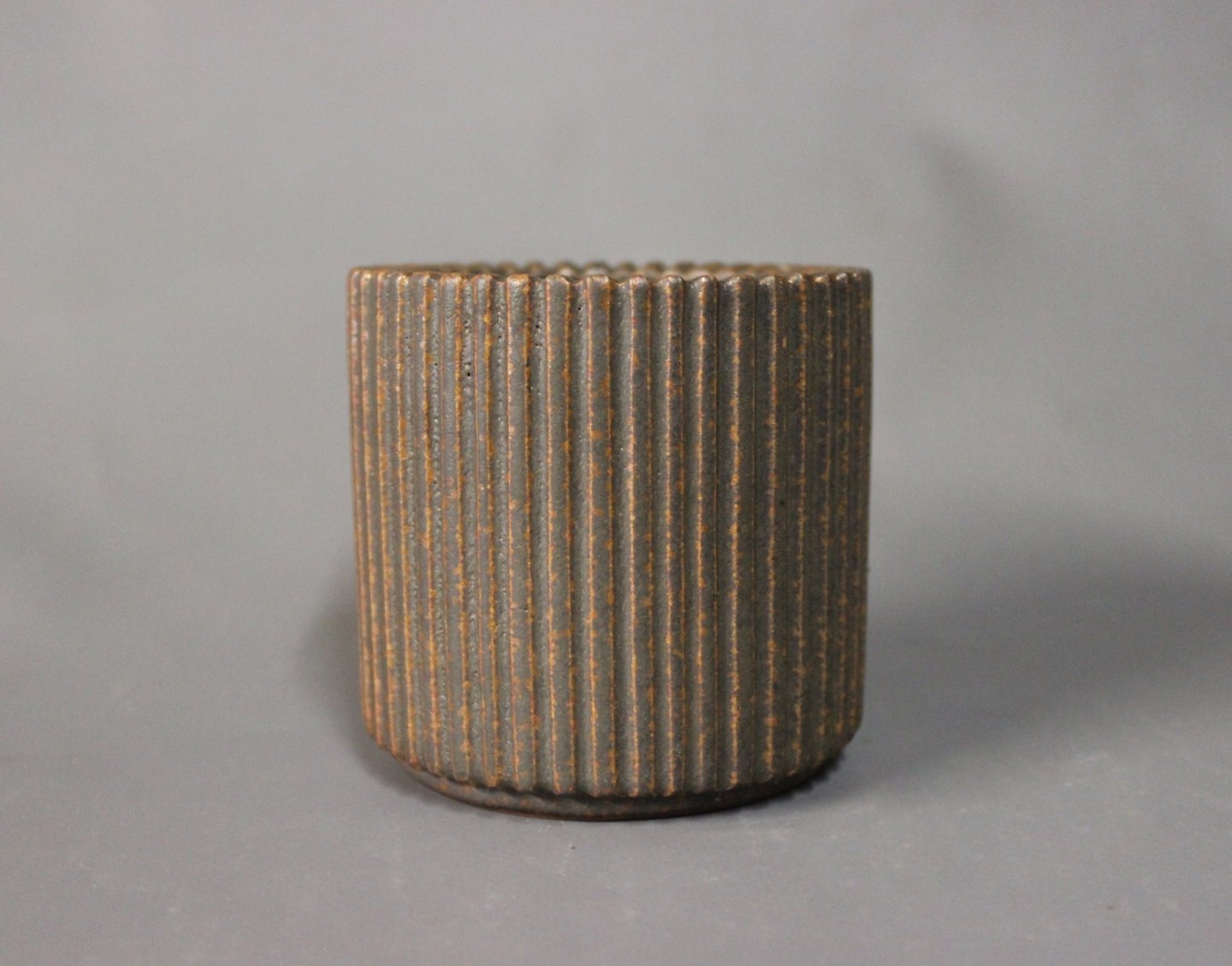 SolgtLille keramik vase/krukke mørke brune farver af Arne Bang, nr.: 129.