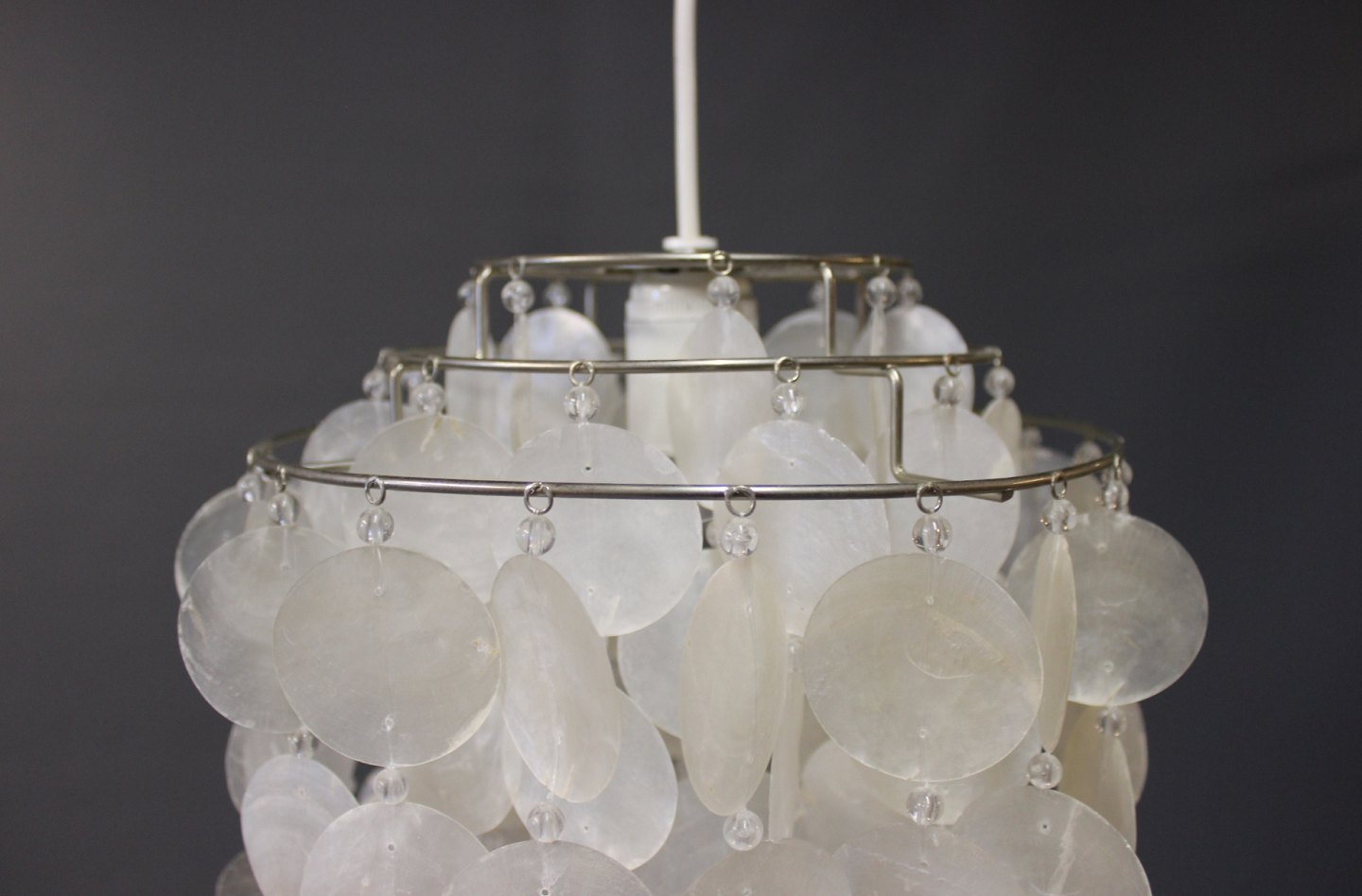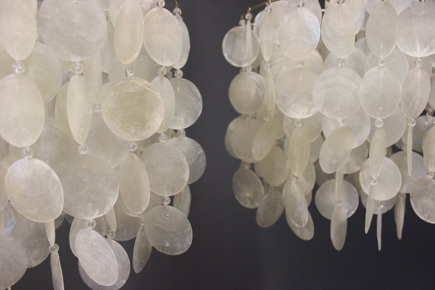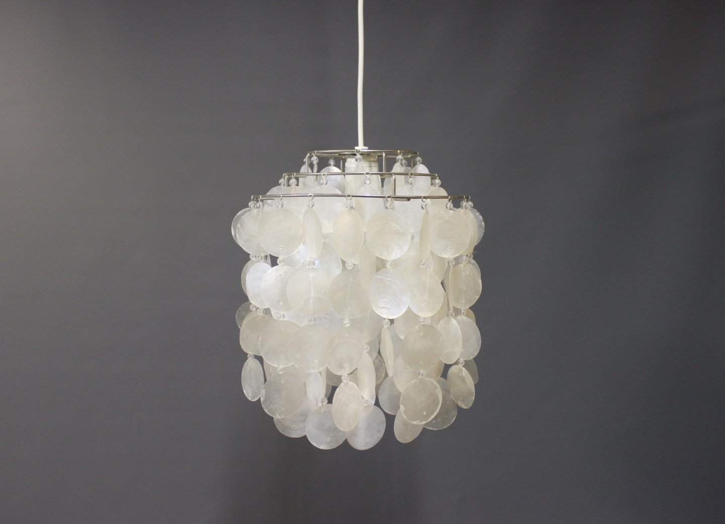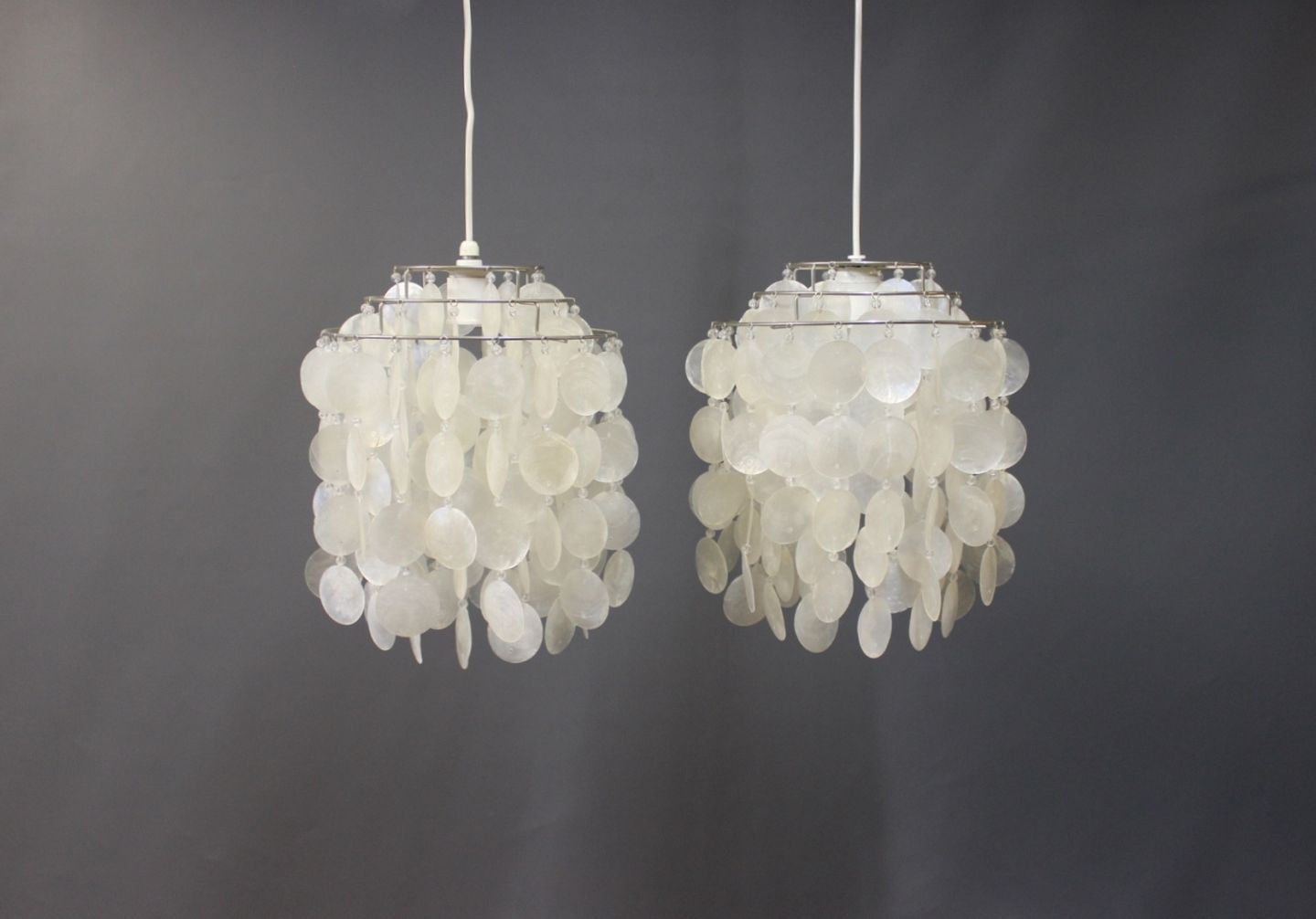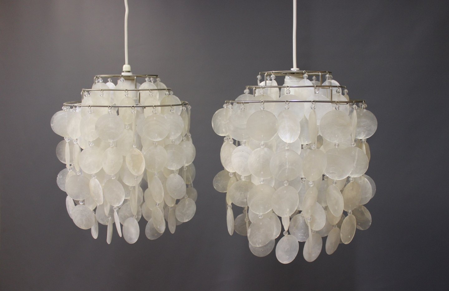 SoldA pair of FUN pendants designed by Verner Panton in 1955 and manufactured by Verpan. The pendants are with Shells of mother-of-Pearl.