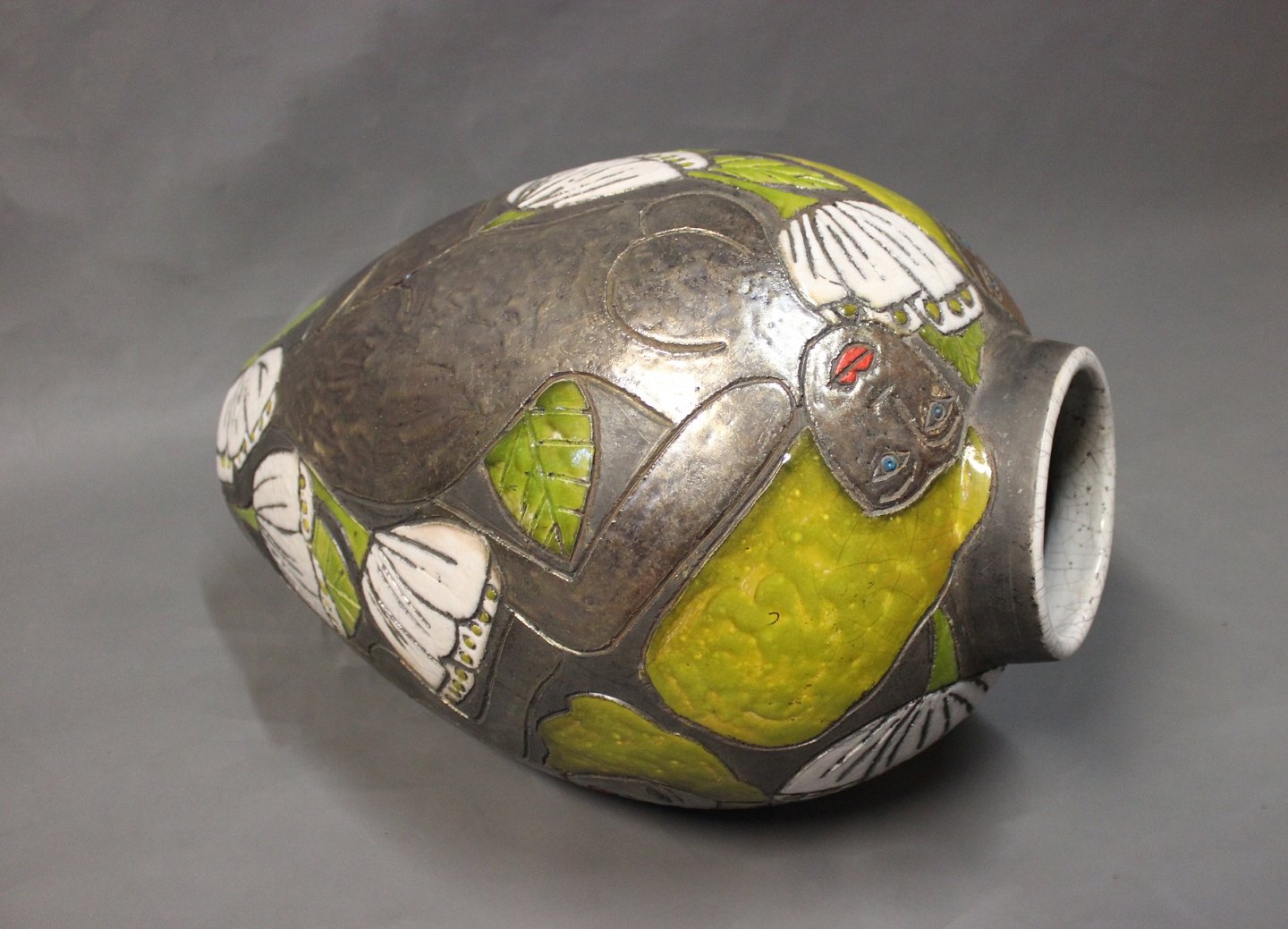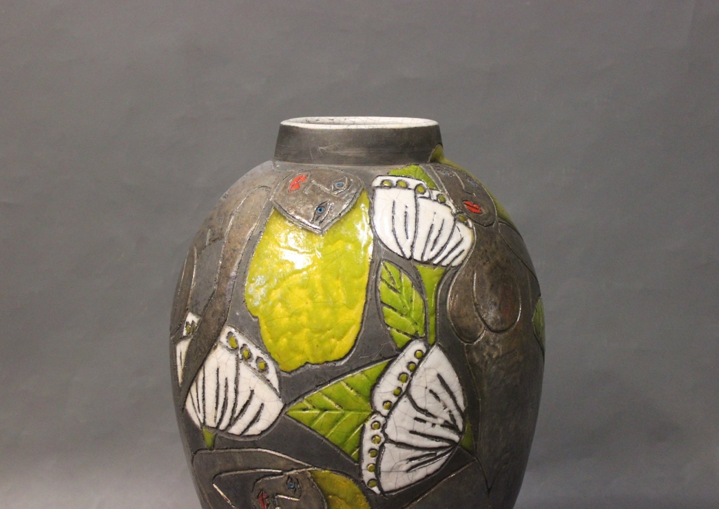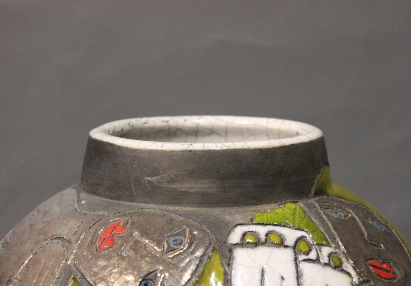 SoldLarge ceramic floor vase in beautiful colous with women motives by Dorthe Friis.