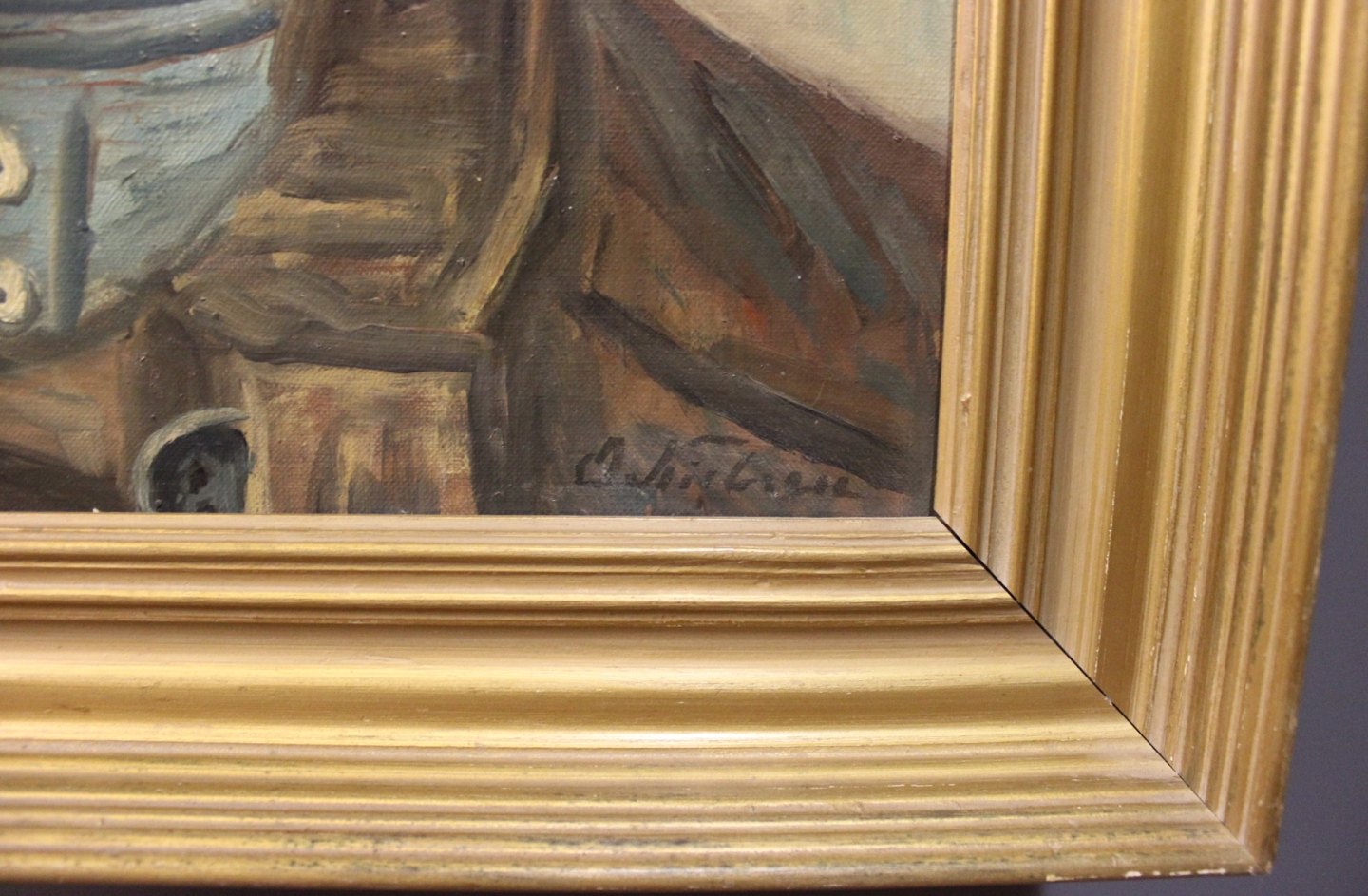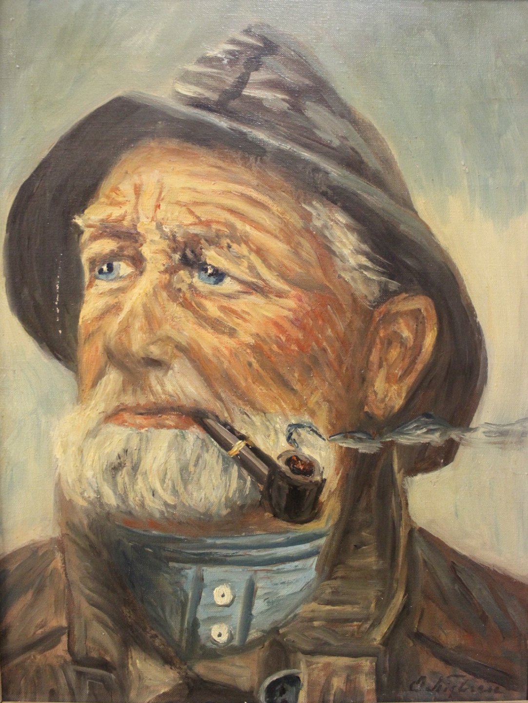 Oil painting on canvas, "The Fisherman" unknown signature.