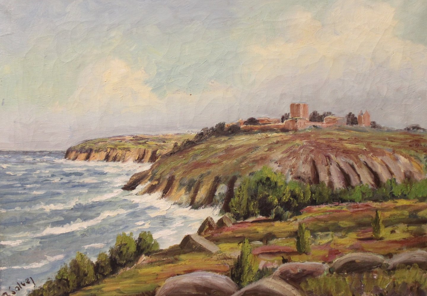Oil painting on canvas of coast landscape signed Solvej.