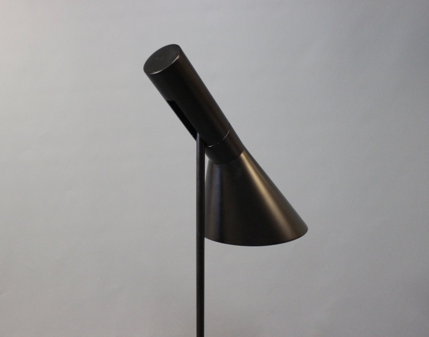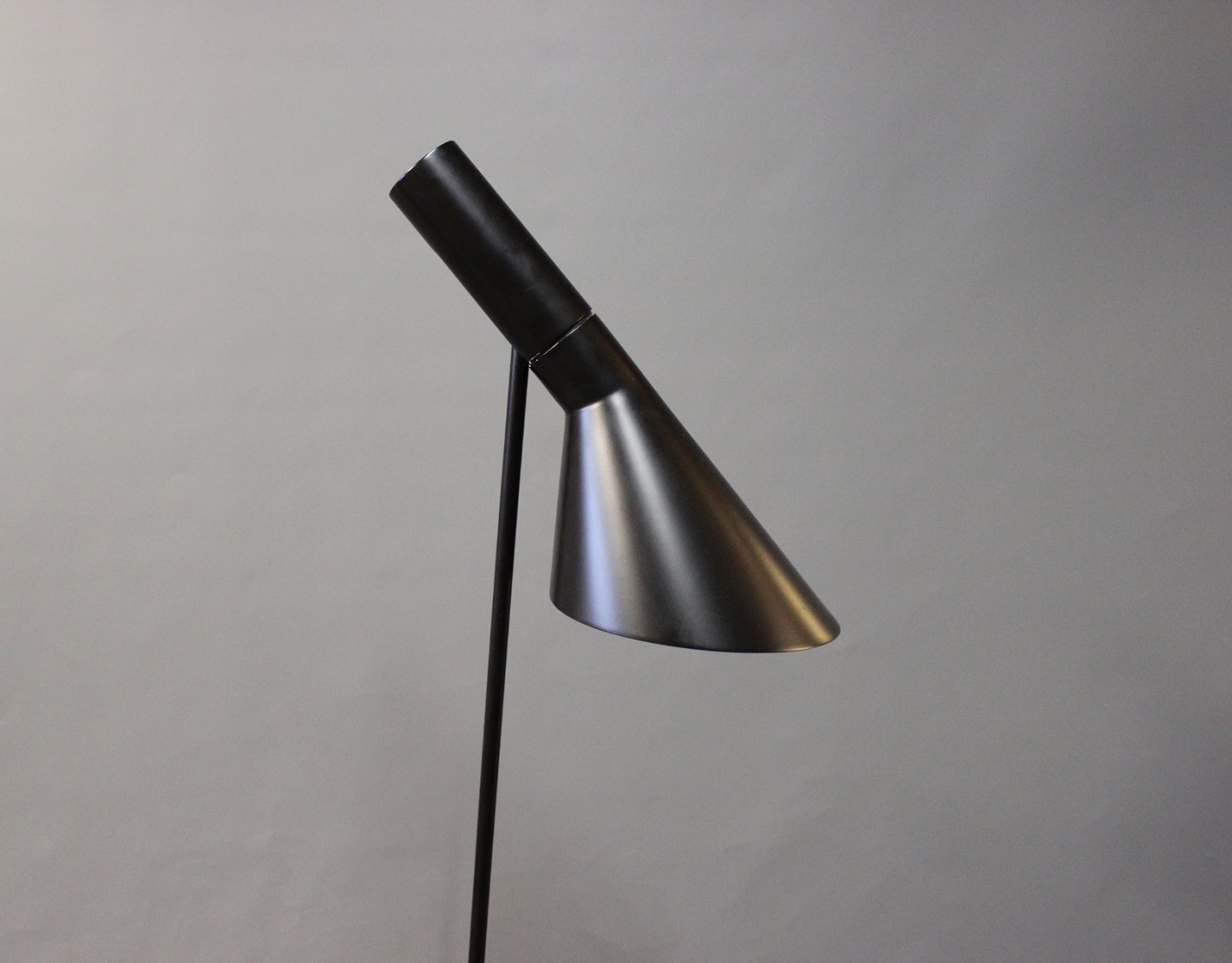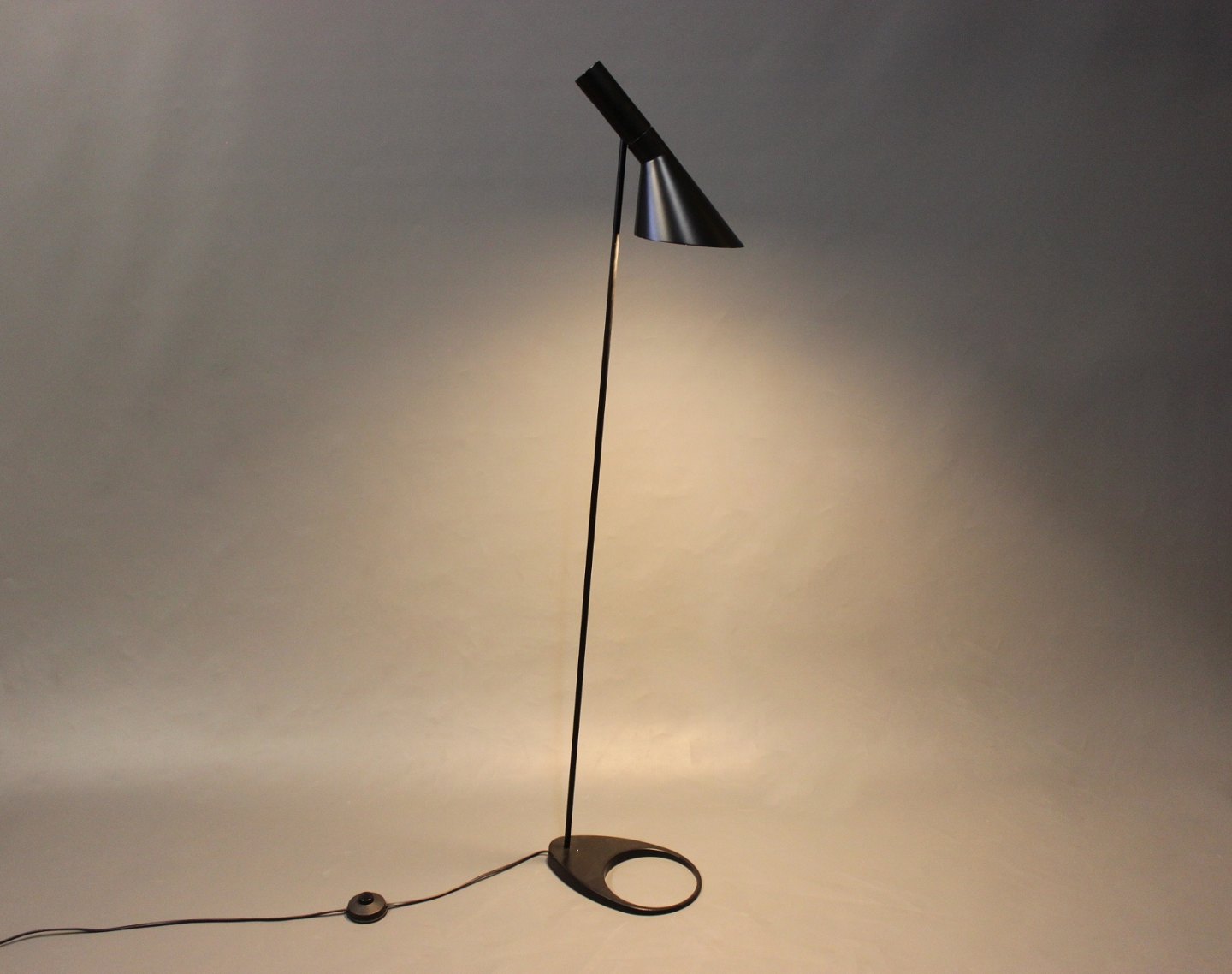 Arne Jacobsen sort gulvlampe designet i 1960 og fremstillet af Louis Poulsen.