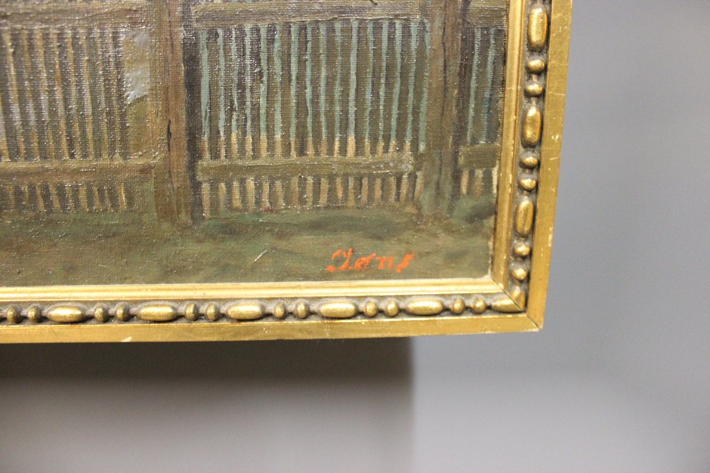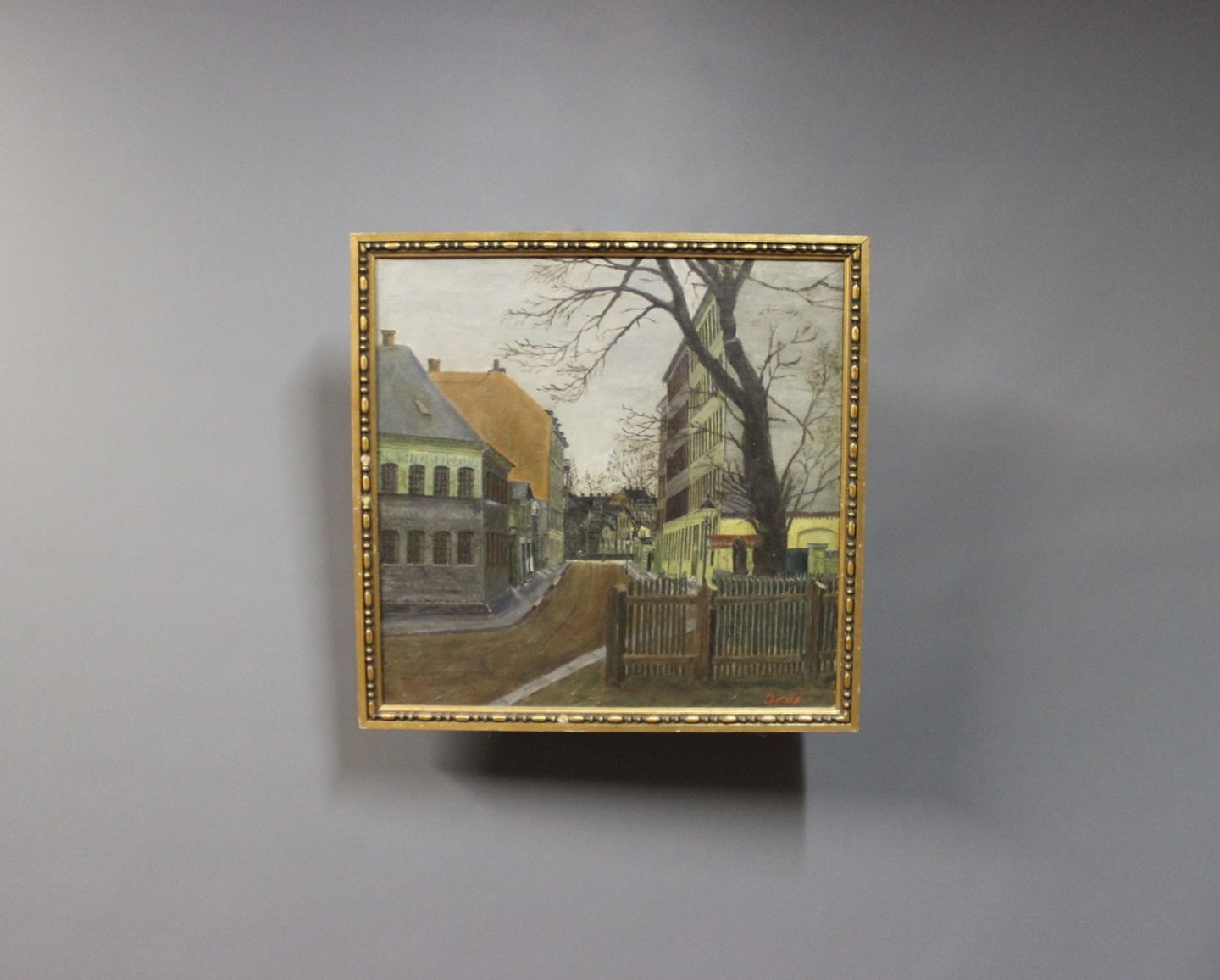 Painting on canvas in dark colors signed Jøns.