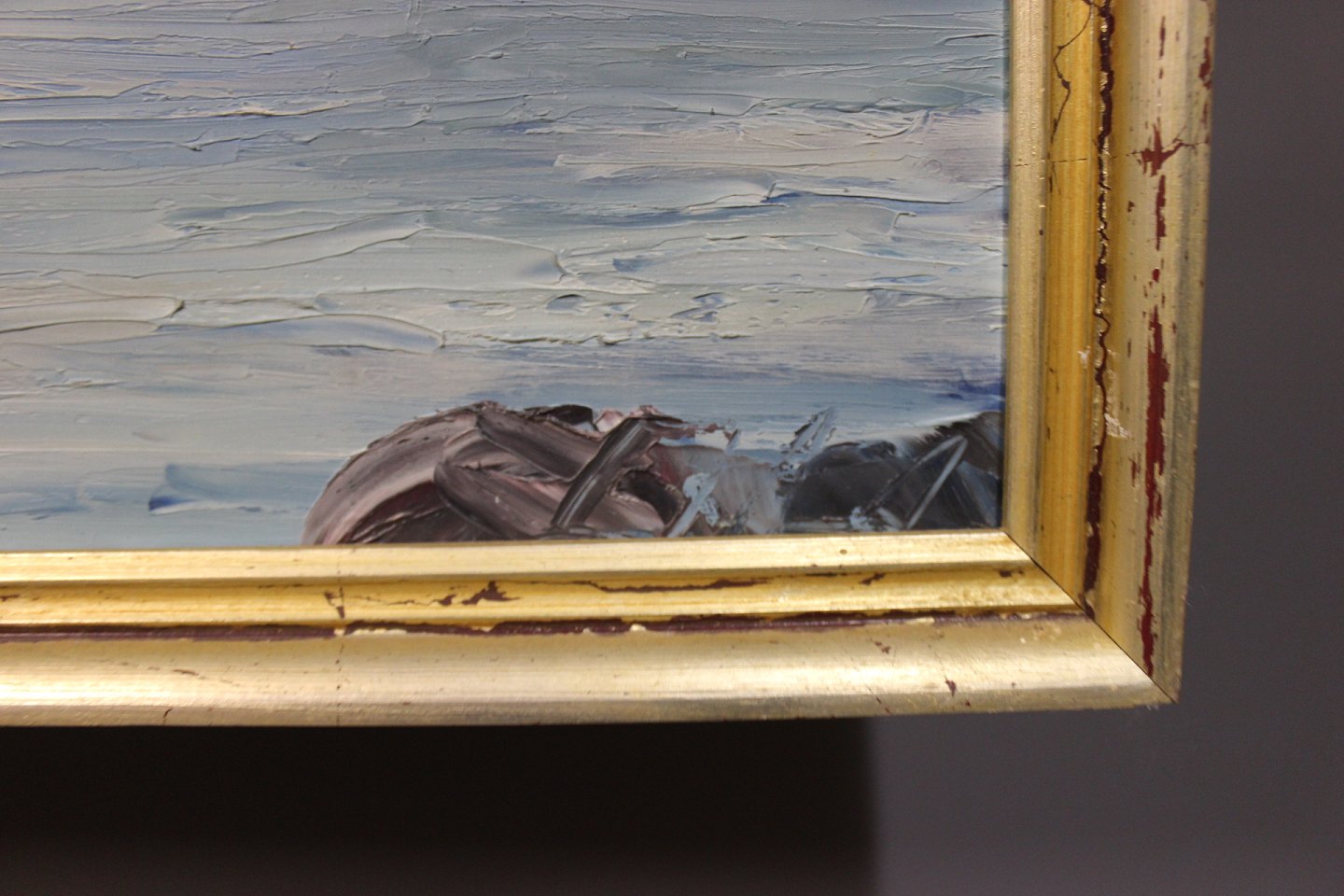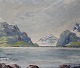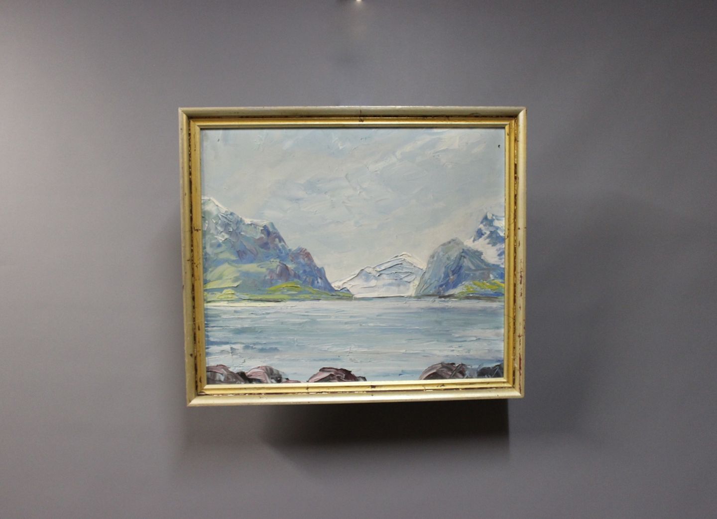 Painting on canvas with motif of Mountains and a lake by an unknown artist.