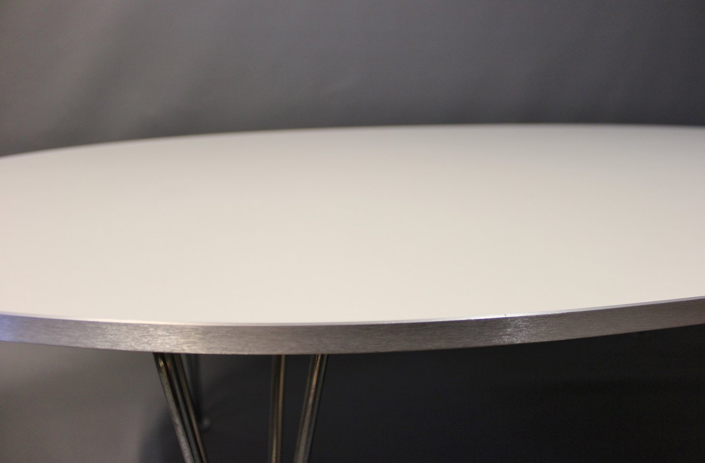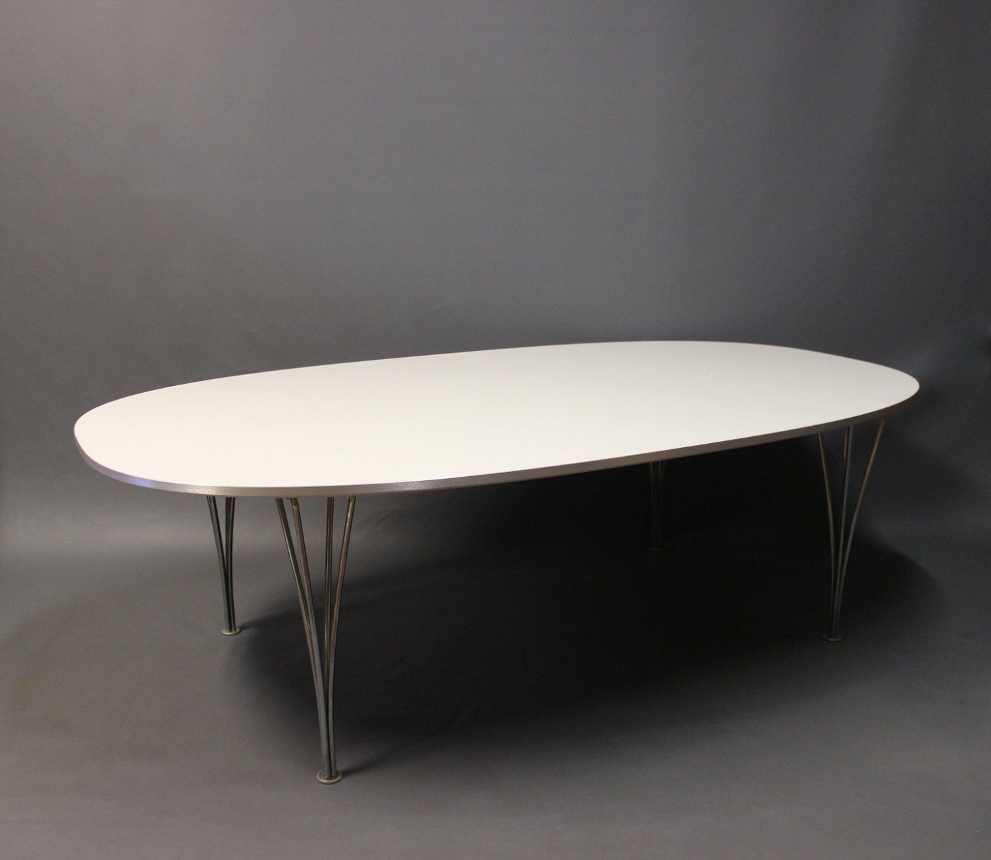 Superellipse Piet Hein coffee table designed by Arne Jacobsen, Piet Hein and Bruno Mathsson and manufactured by Fritz Hansen. The table is with White laminate and aluminum edge and a rare model.