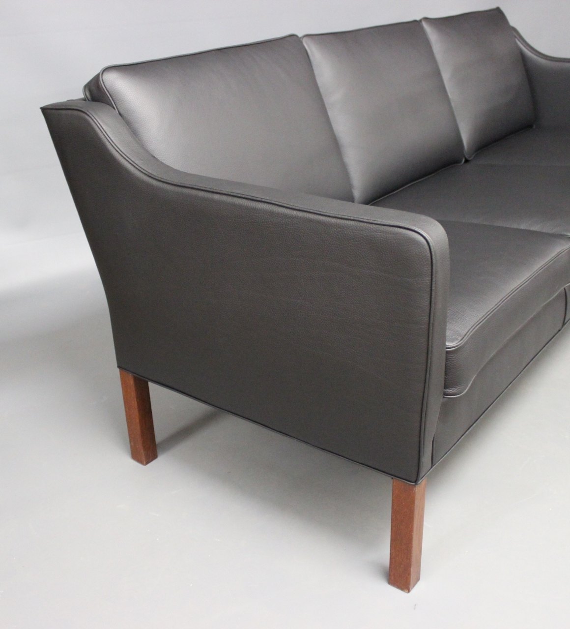 Sold2209 BM 3 seater sofa in Black leather designed by Børge Mogensen in 1963 and manufactured by Fredericia Furniture in the 1970s, newly upholstered in Black Classic leather.
