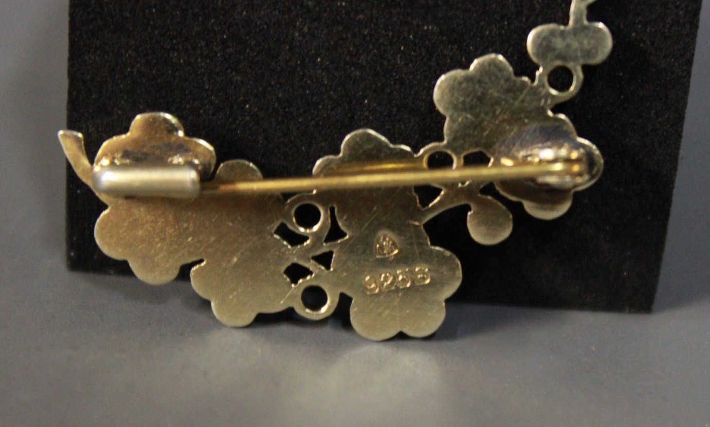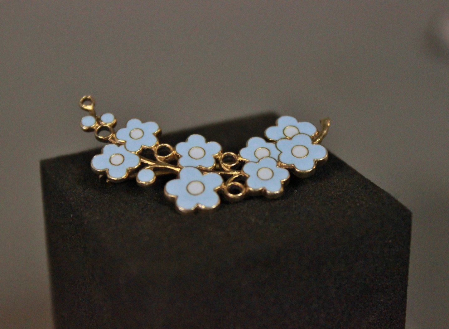 SolgtFin blomsterbroche med blå emalje og i forgyldt 925 sterling sølv.