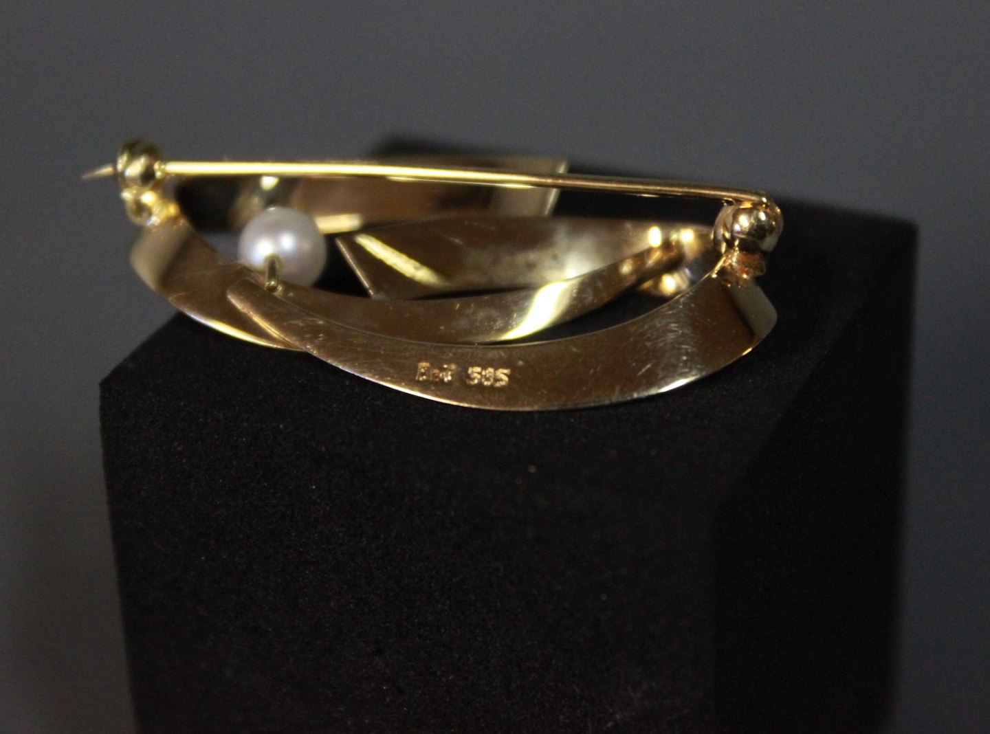SoldBrooch in 14 ct. gold with Pearl stamped Br.J.