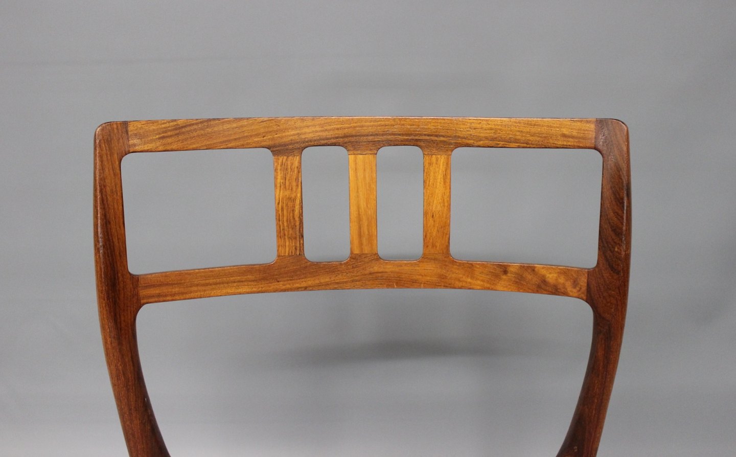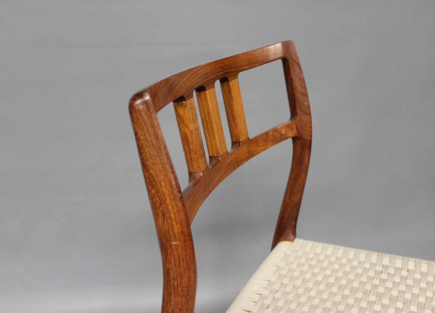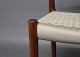 SoldA set of six dining room chairs, model 79, designed by N.O. Moeller in 1966 and manufactured by J.L. Moeller in the late 1960s. The chairs are made of rosewood and light grey seats.