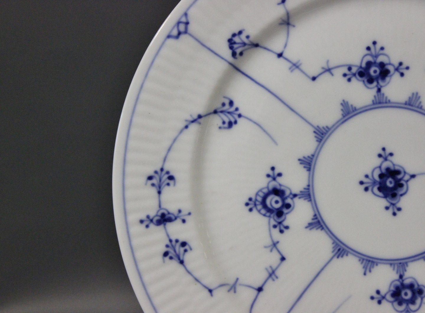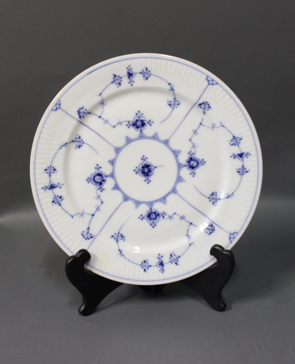 SolgtKgl. Musselmalet riflet helflad frokosttallerken #186. Spørg for antal på lager.