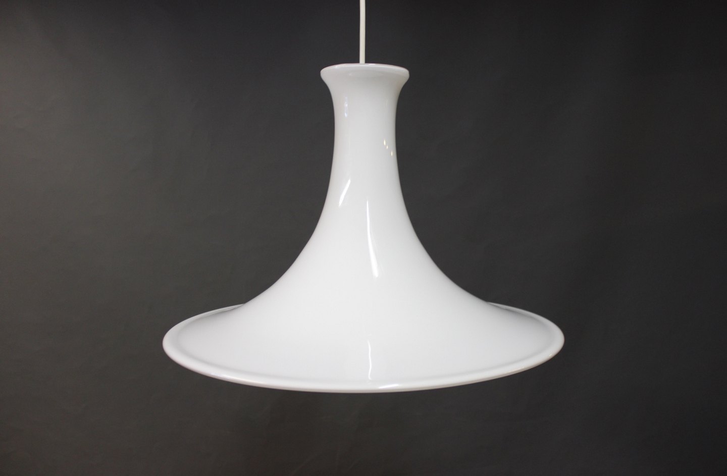 Sold"Mandarin" pendant designed by Michael Bang for Holmegaard/Royal Copenhagen. The pendant is of white mouth blown opaline glass fromt the 1980s.