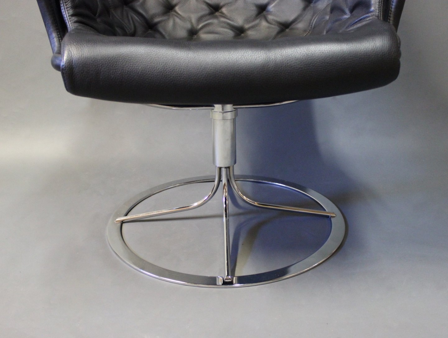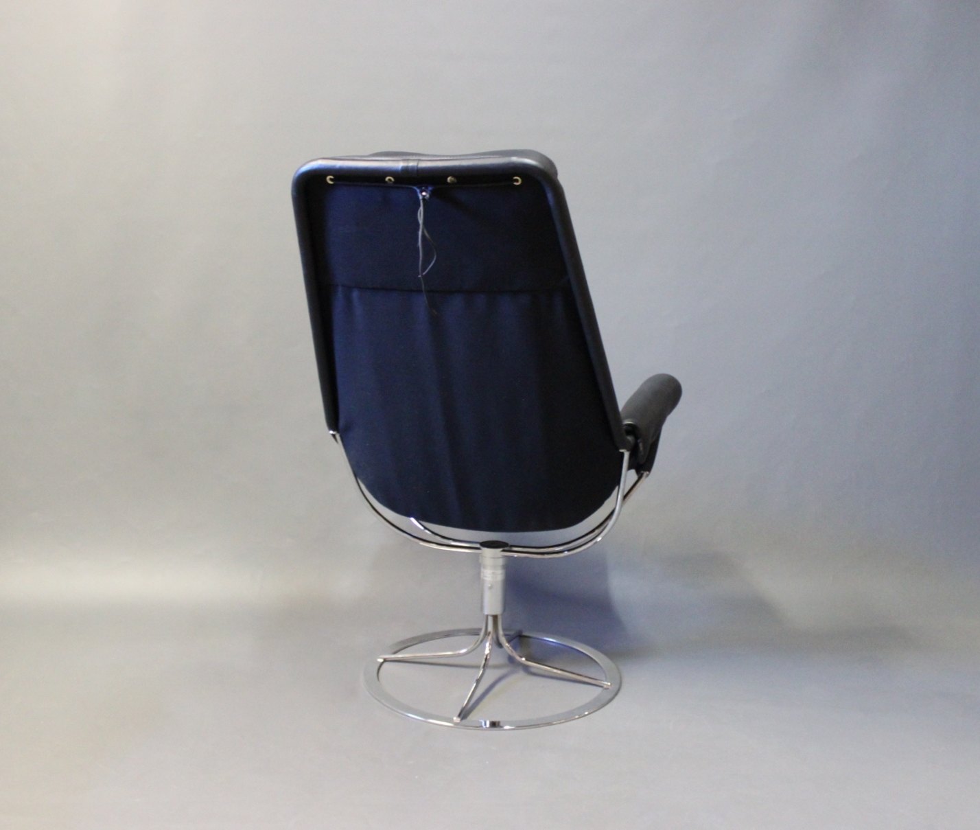 Easy chair, model Jetson 69, in black classic leather designed by Bruno Mathsson in 1966 and manufactured by DUX in the late 1970s/start of the 1980s. The chair has recently been reupholstered.