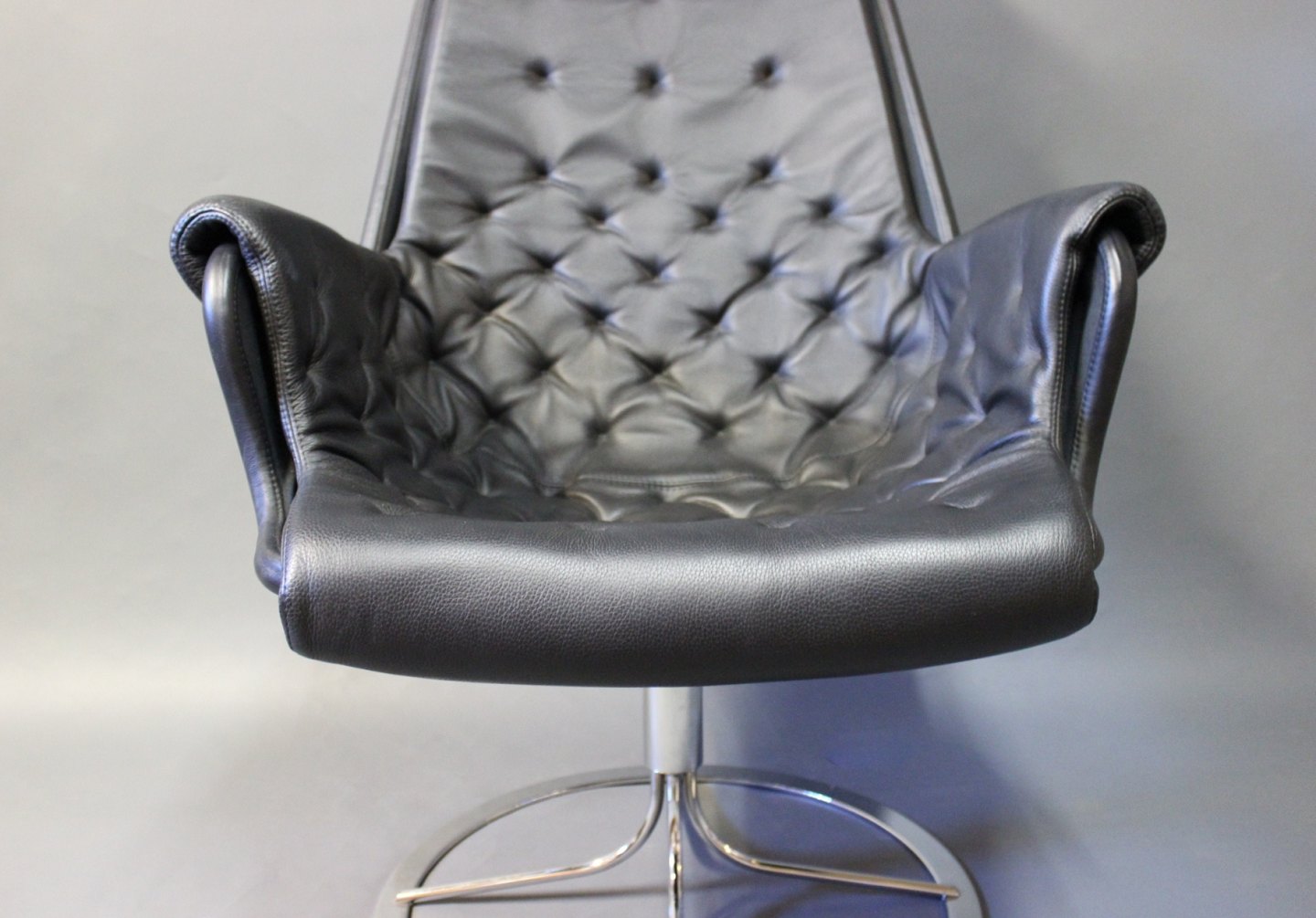 Easy chair, model Jetson 69, in black classic leather designed by Bruno Mathsson.