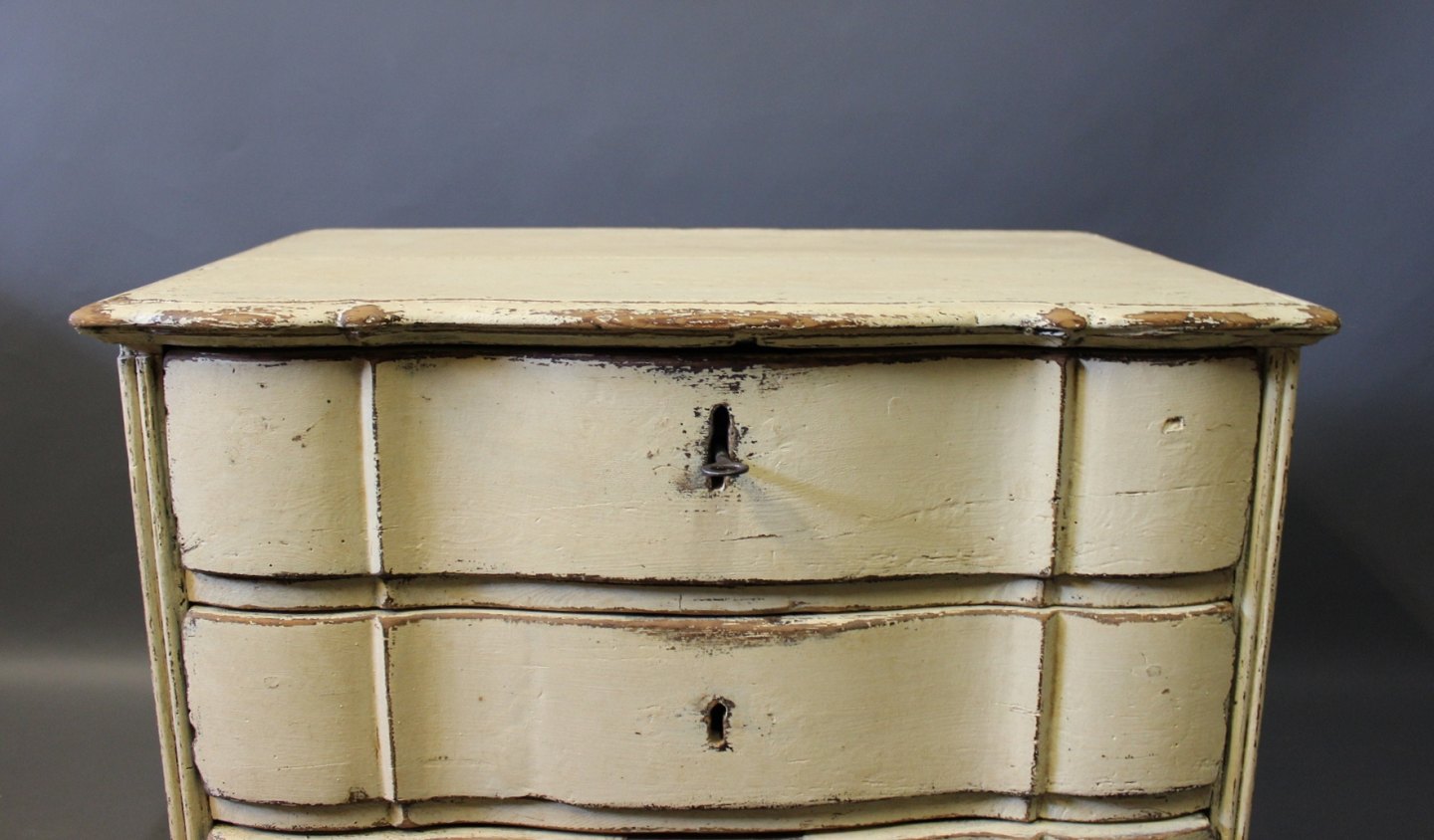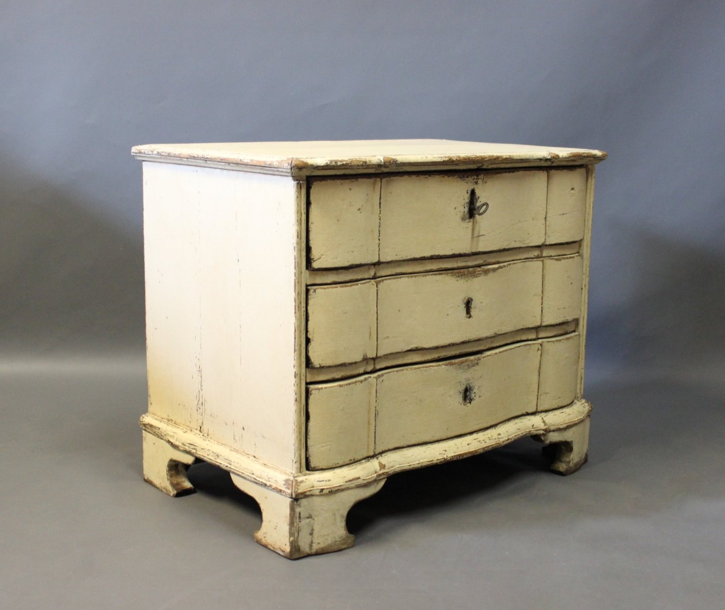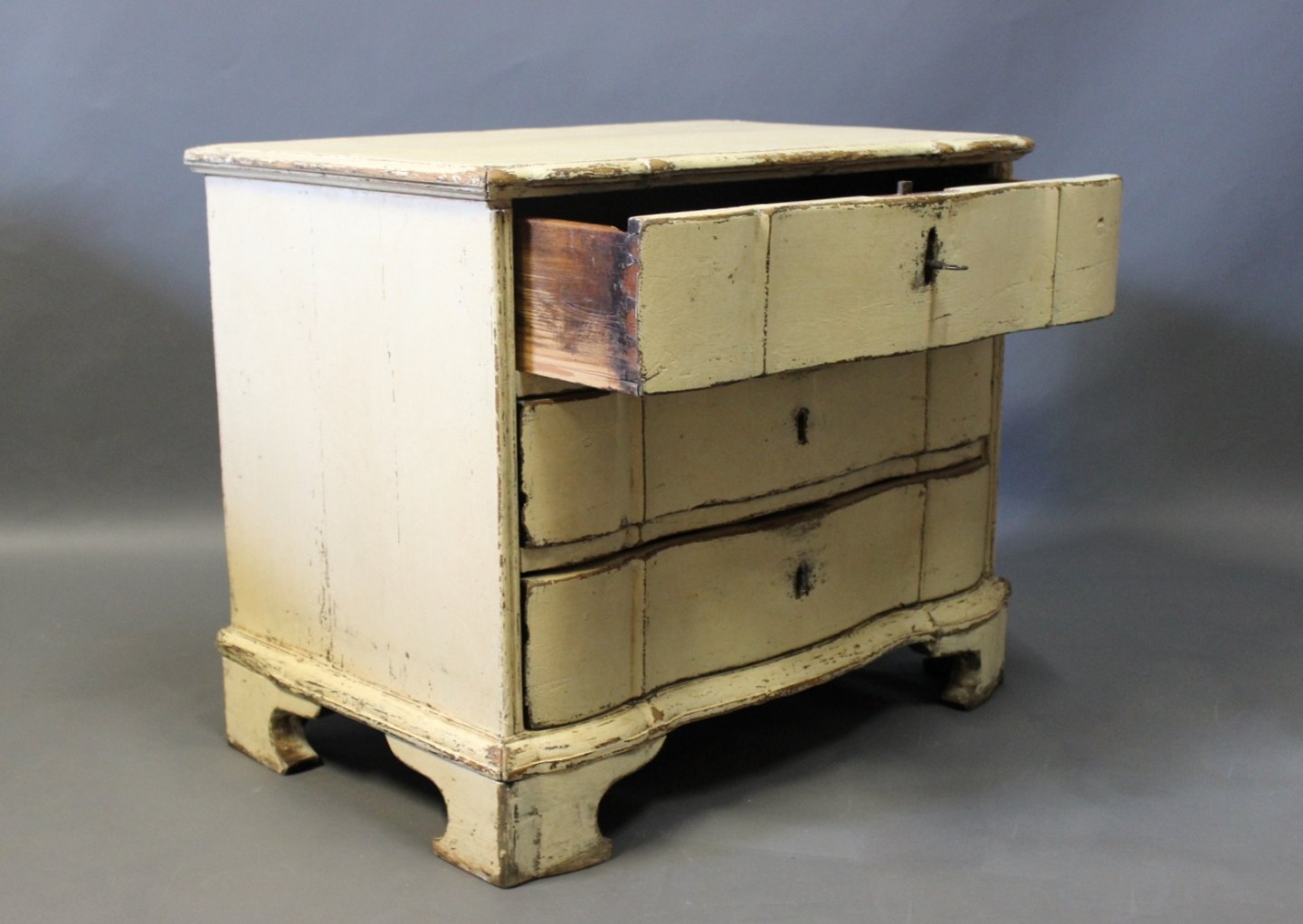 SoldSmall danish baroque chest of drawers of painted wood from the 1760s.