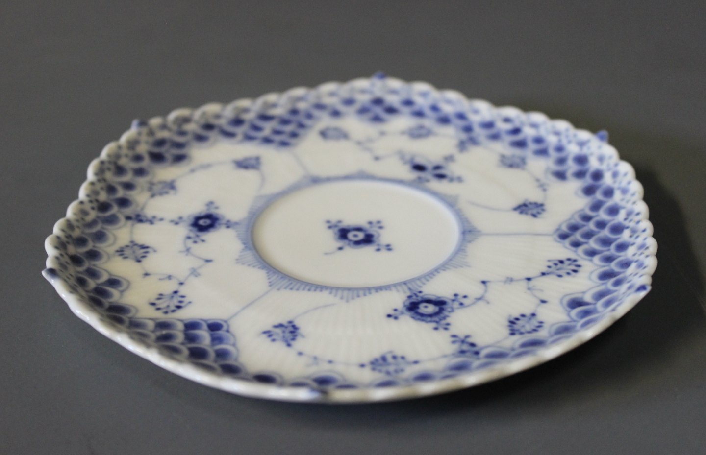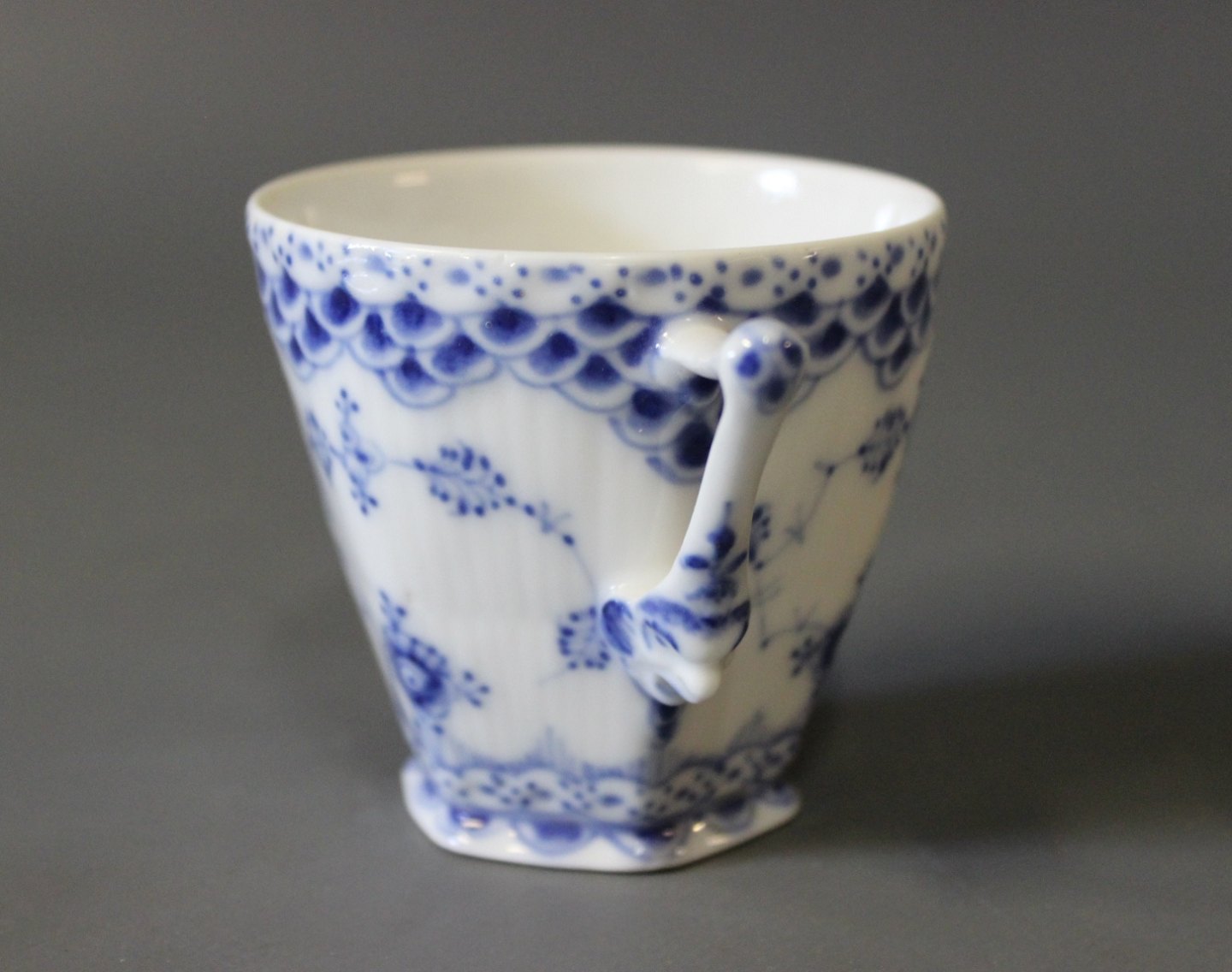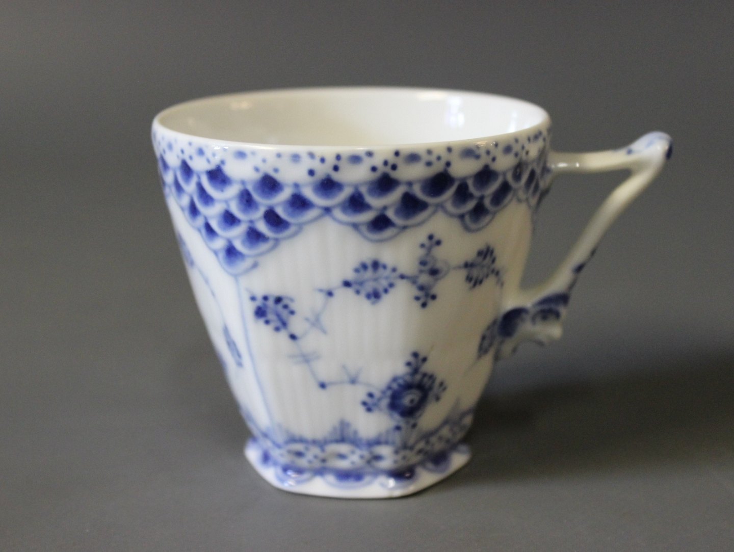 SoldRoyal Copenhagen blue fluted lace coffecup with saucer, nr.: 1/1036.