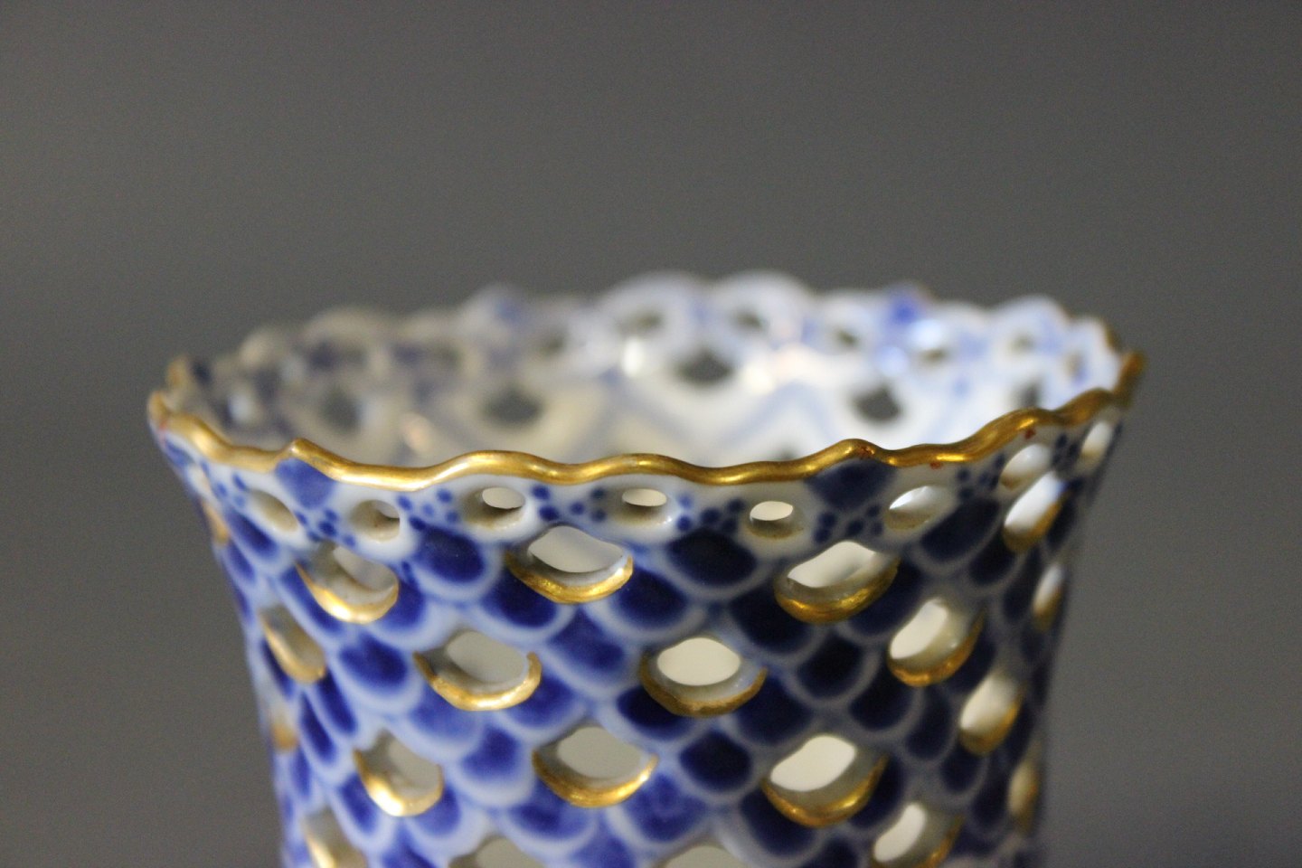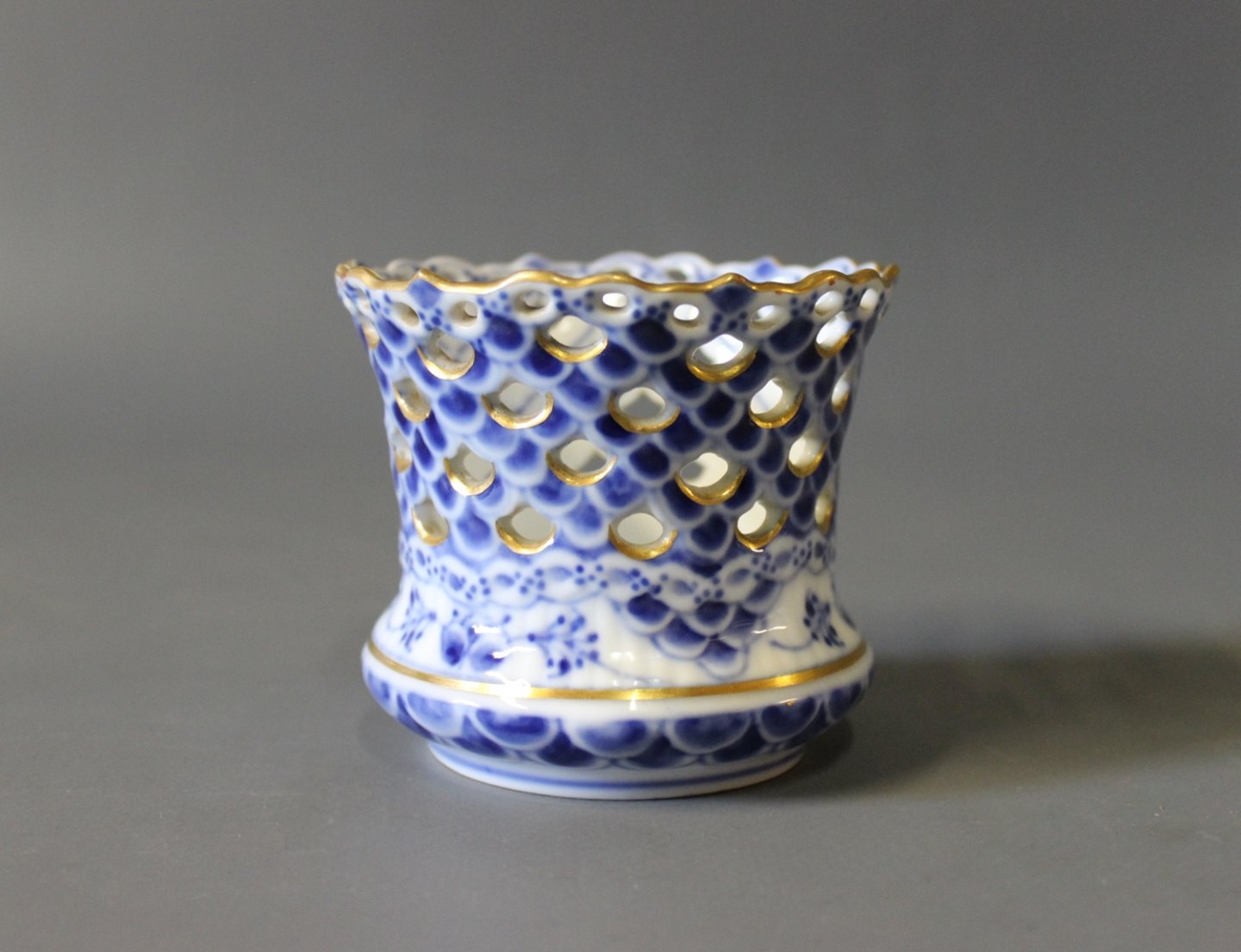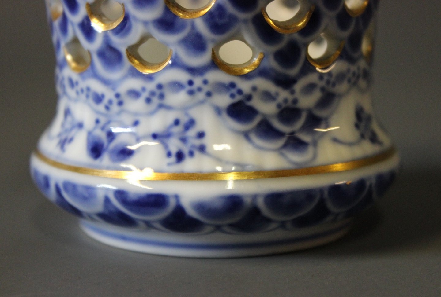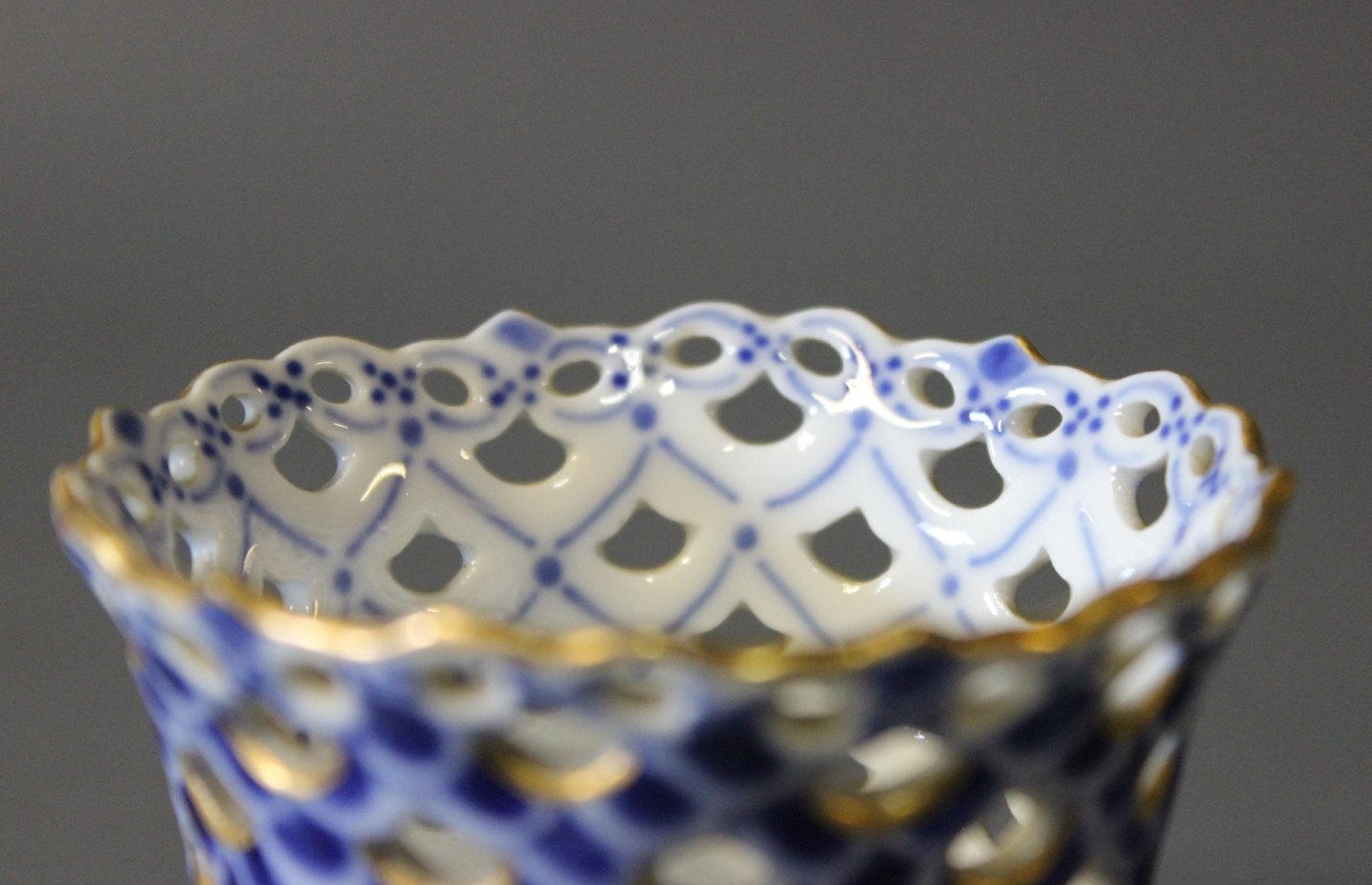SoldRoyal Copenhagen blue fluted lace vase with gilded edge, no.: 1/1015.