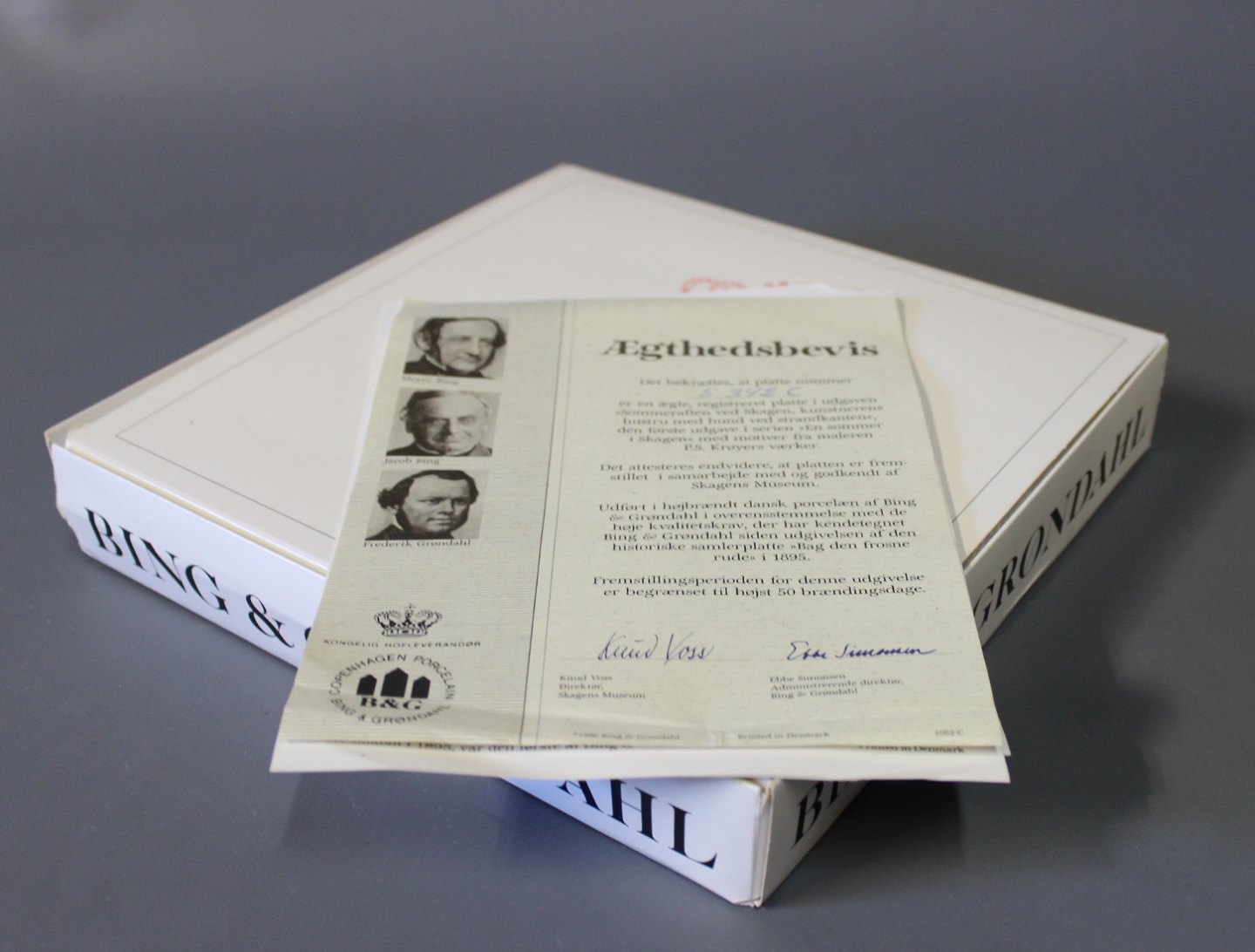 "Ved Frokosten", nr.: 6 051 B af P. S. Krøyer for B&G fra 1986. Æske og ægthedsbevis medfølger.