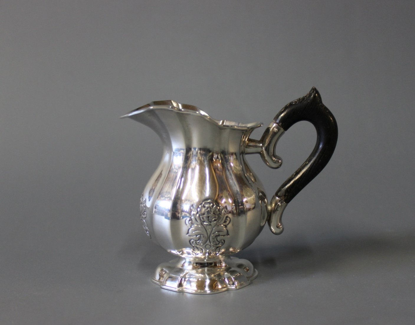 Coffee serving set consisting of coffee jug, cream jug and sugar bowl in 835 silver and stamped H.Gr. by Hugo Grün.
