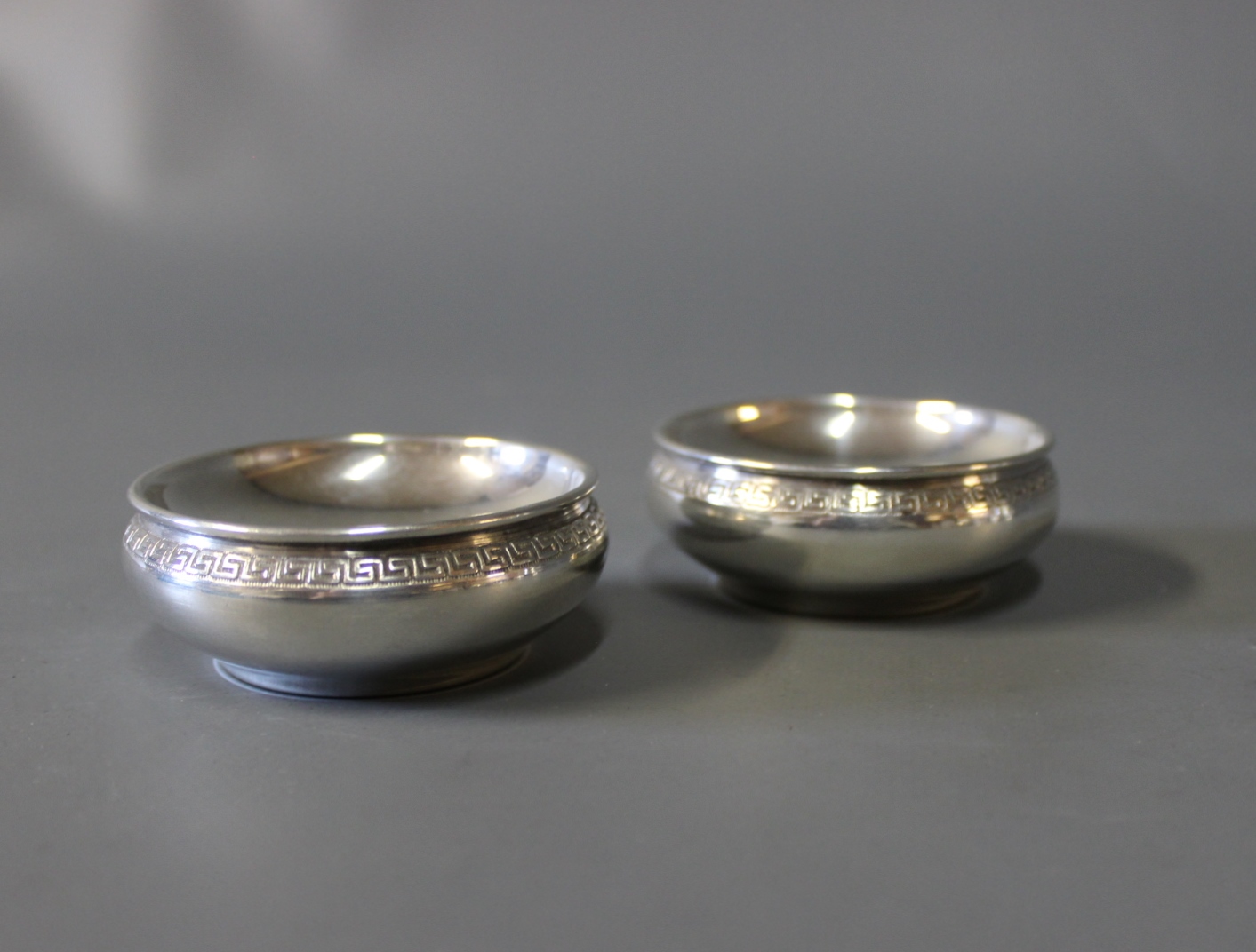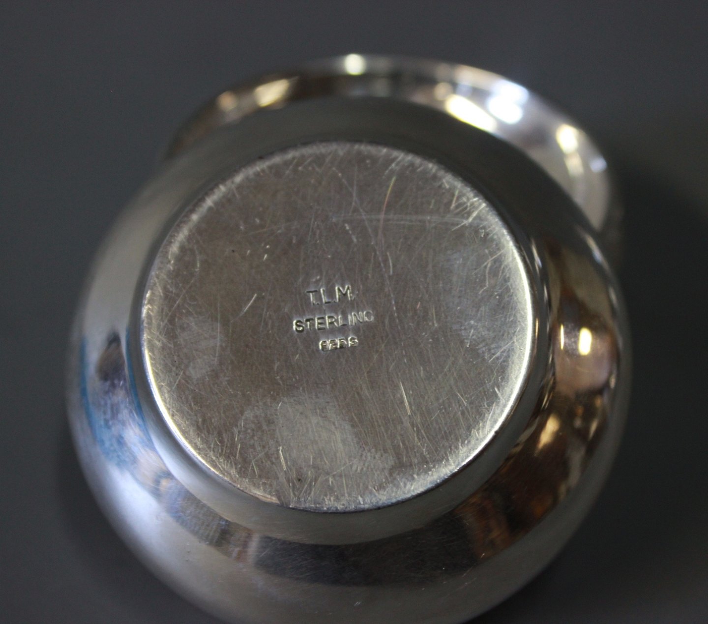 Et sæt lave lysestager i 925 sterling sølv stemplet T.L.M. af T. Linder-Madsen.