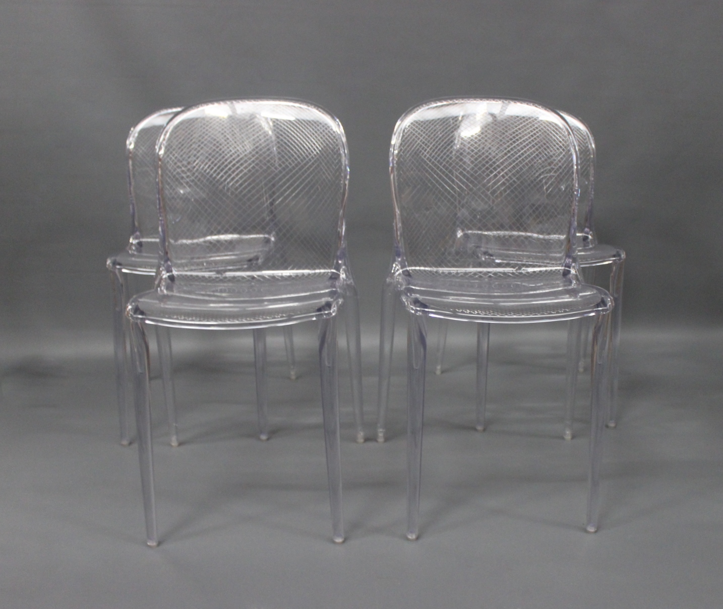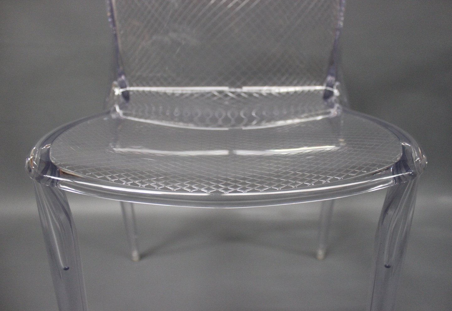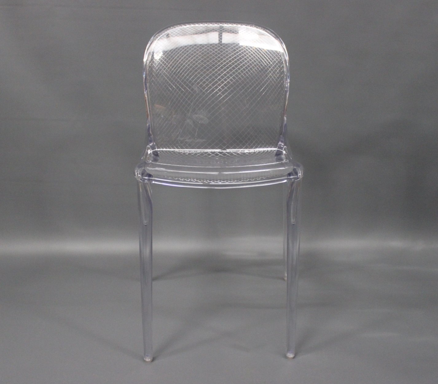Thalya chairs of polycarbonate designed by Patrick Jouin for Kartell. The chair has rounded edges and an unique checkered pattern on seat and back.