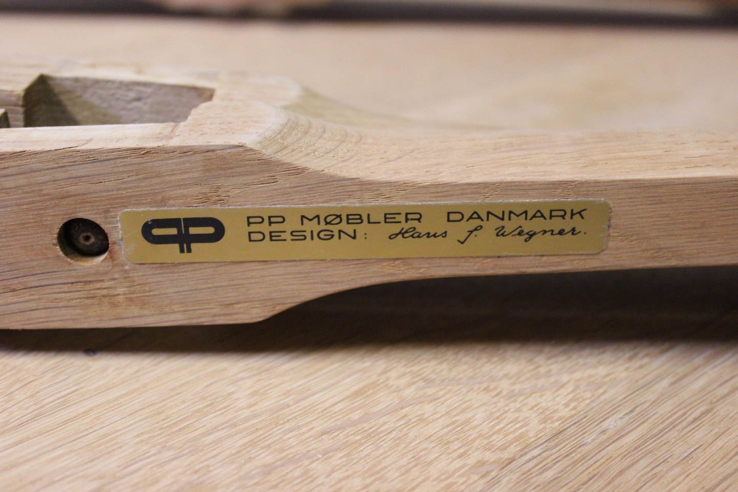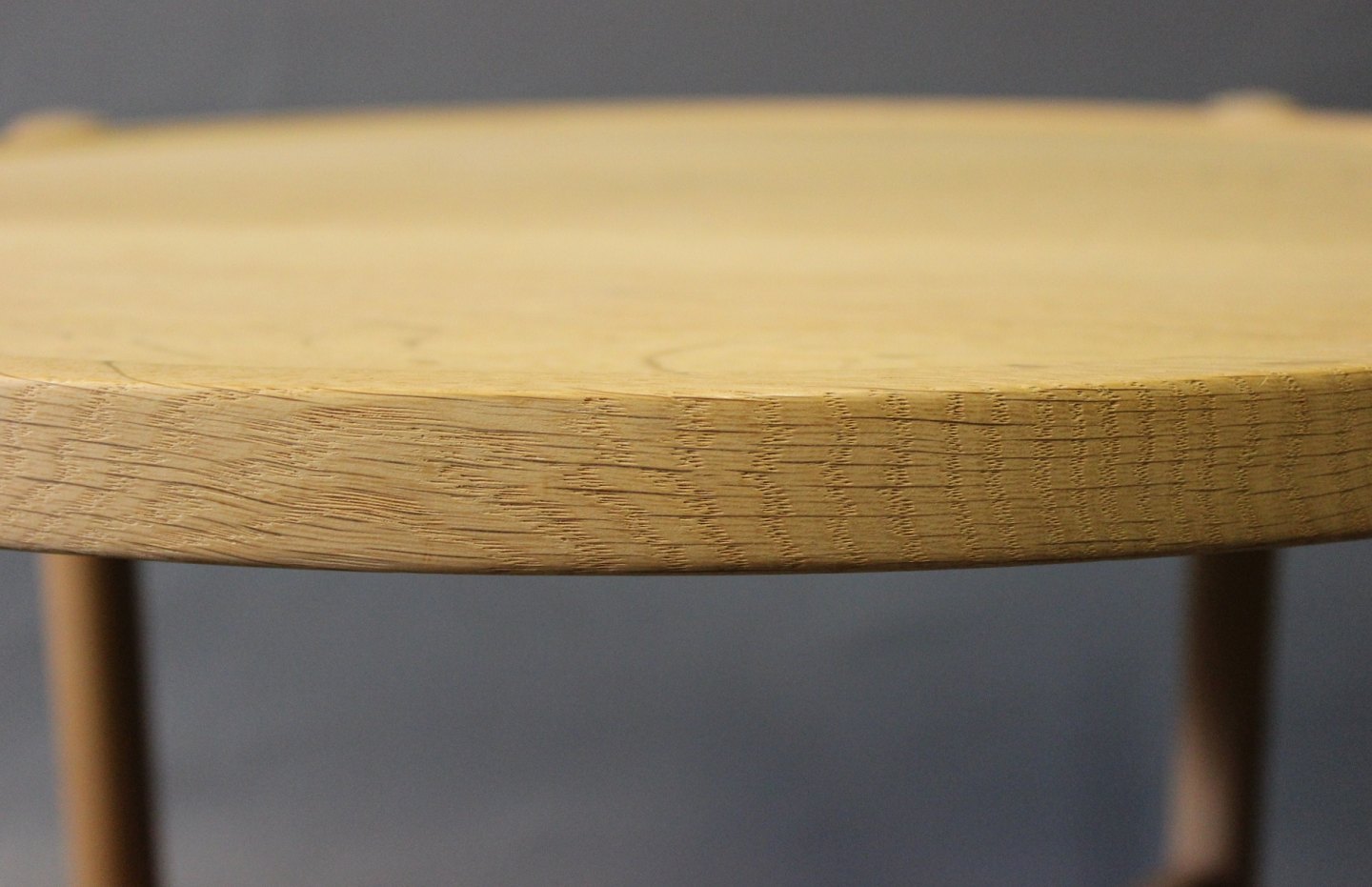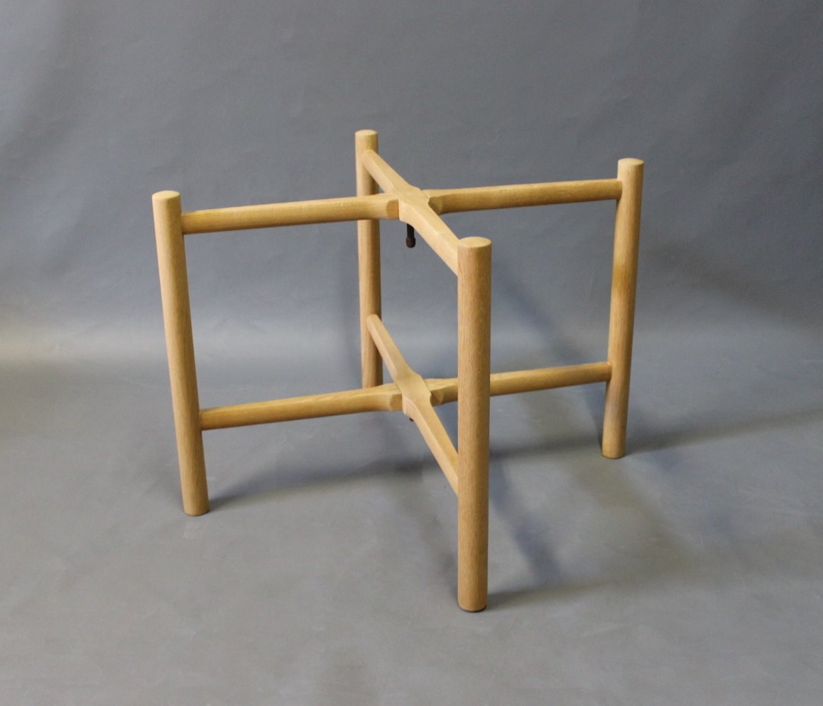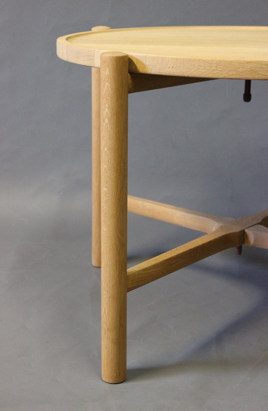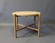 SolgtSidebord, model PP35, i sæbebehandlet eg designet af Hans J. Wegner i 1945 og fremstillet hos PP Møbler. Den runde træplade kan tages af og bruges som serveringsbakke, og bordet kan nemt foldes sammen og pakkes væk.