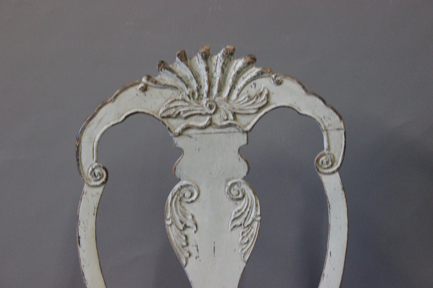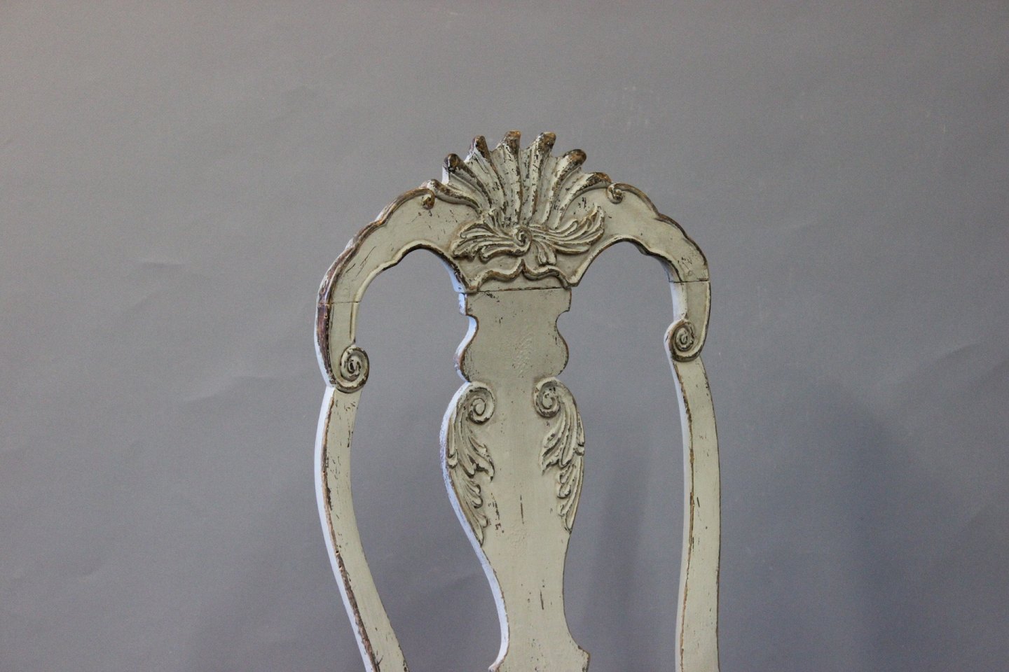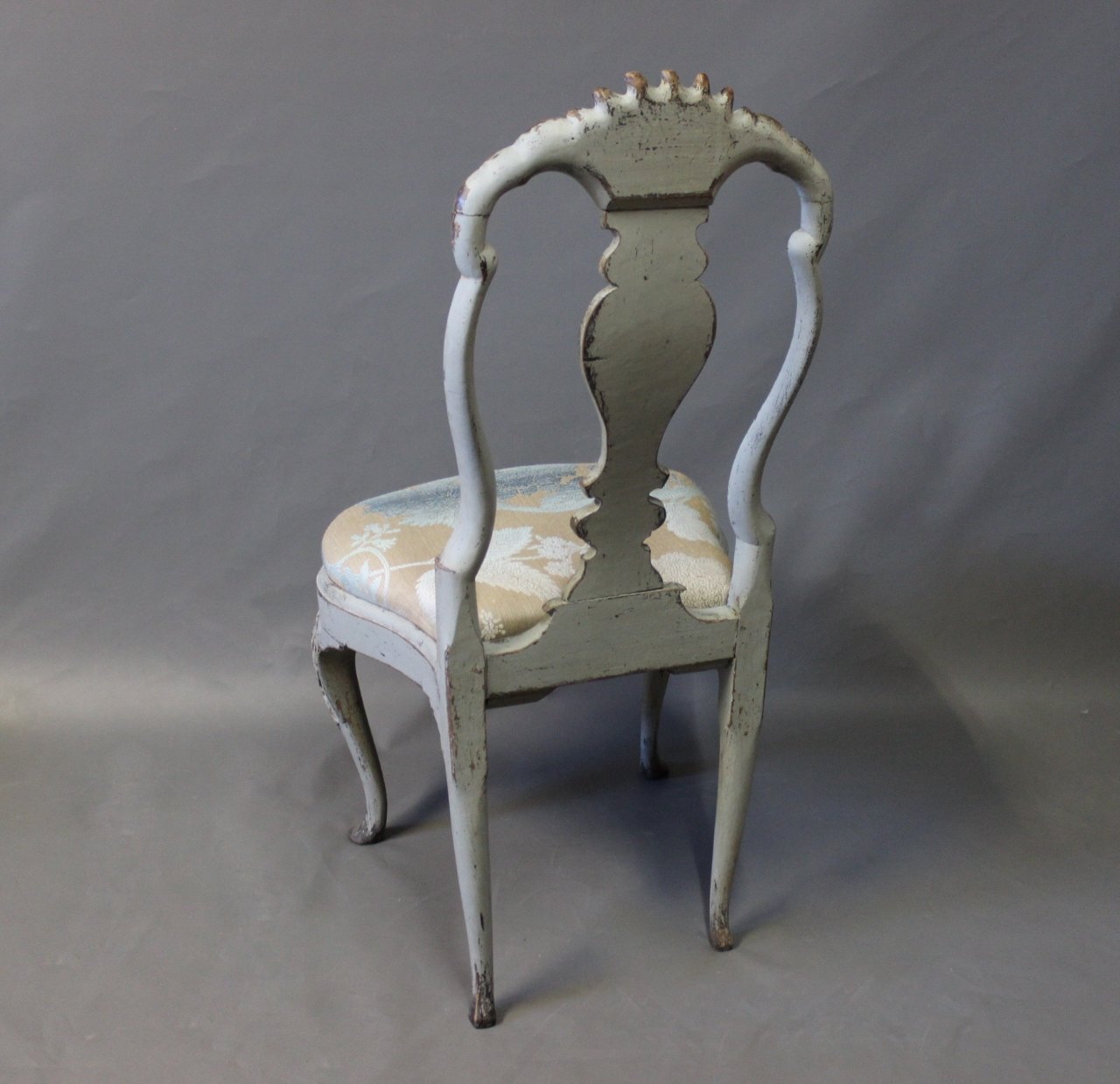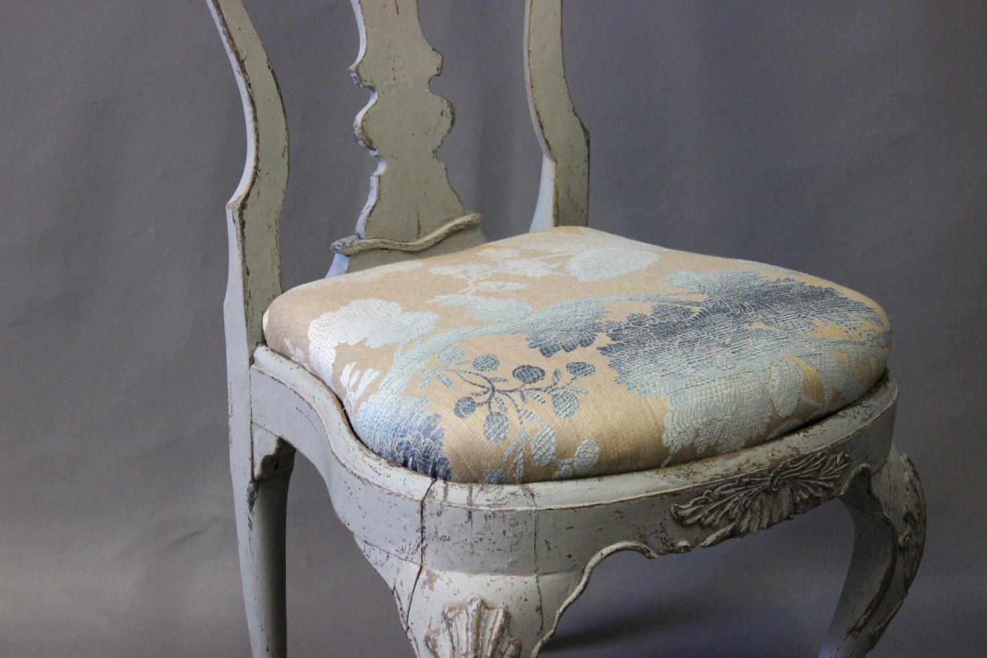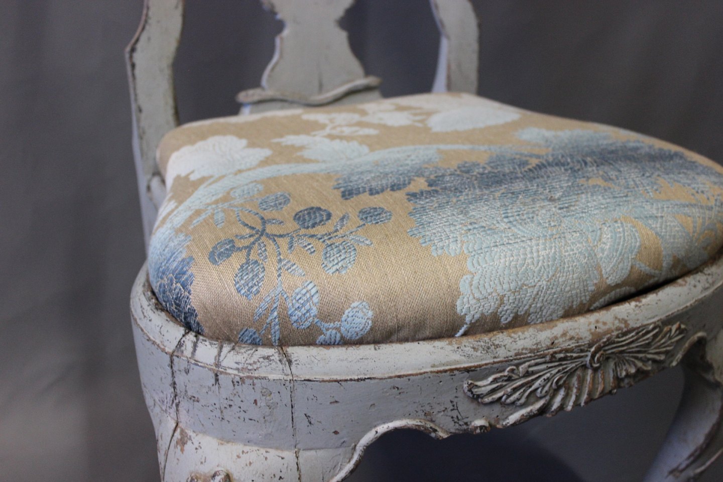 Gråmalet Rokoko stol fra år 1740 med ny polstret sæde.