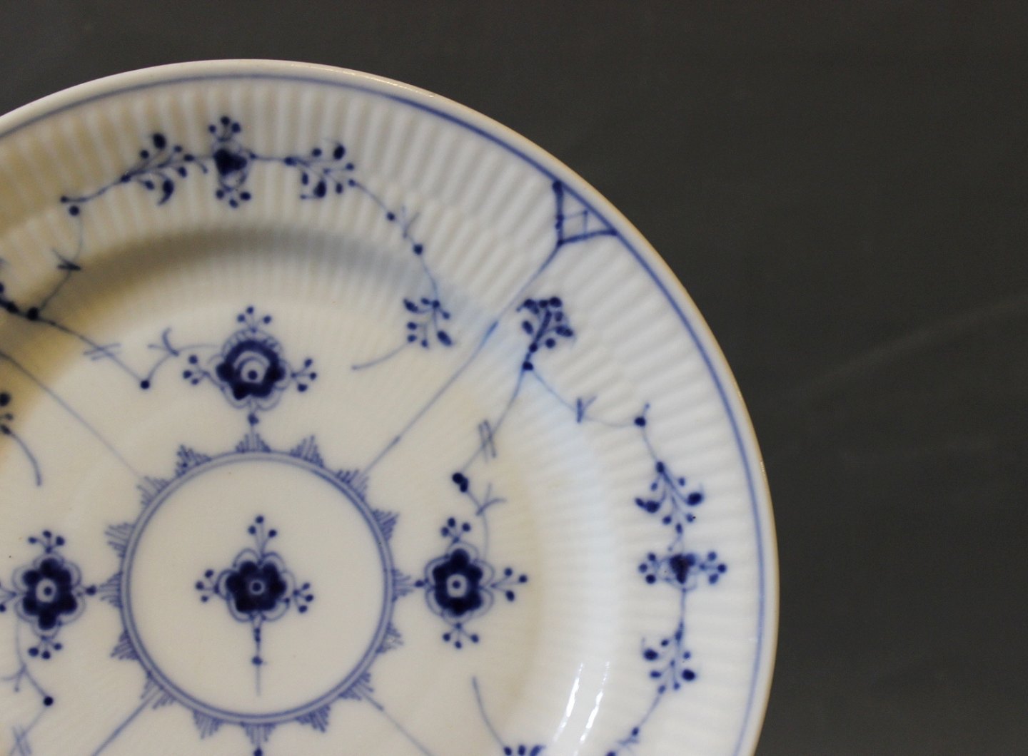 SolgtKgl. Musselmalet riflet frokosttallerken, nr.: 1/178. Spørg for antal på lager.