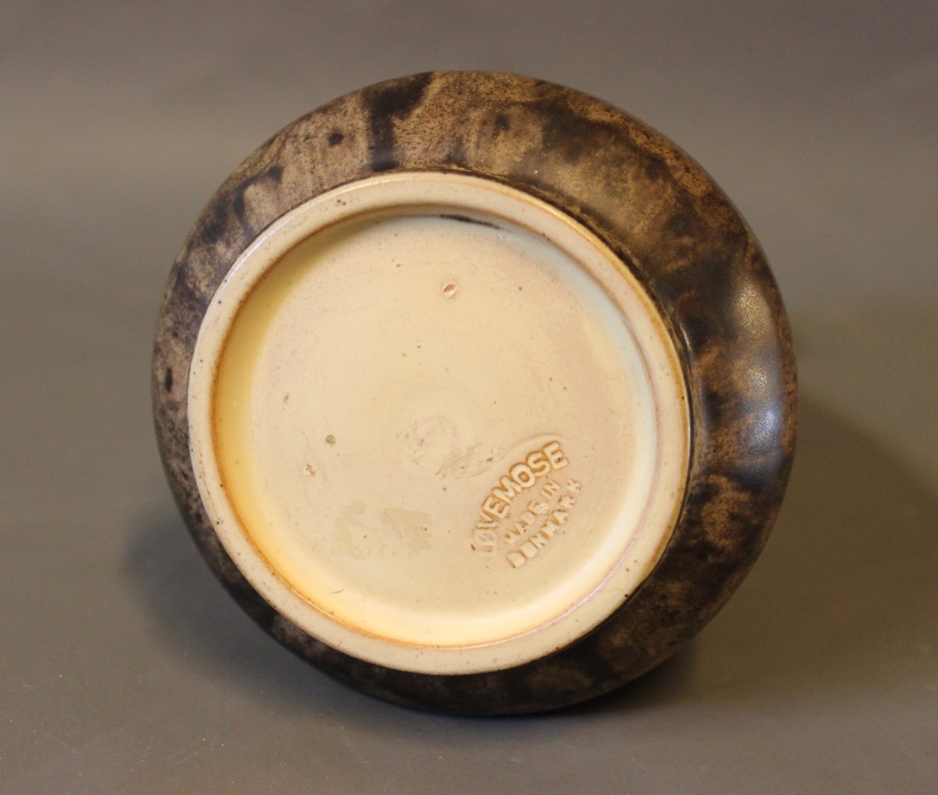 SoldVase By "Løvemose" in brown colours and light pattern.