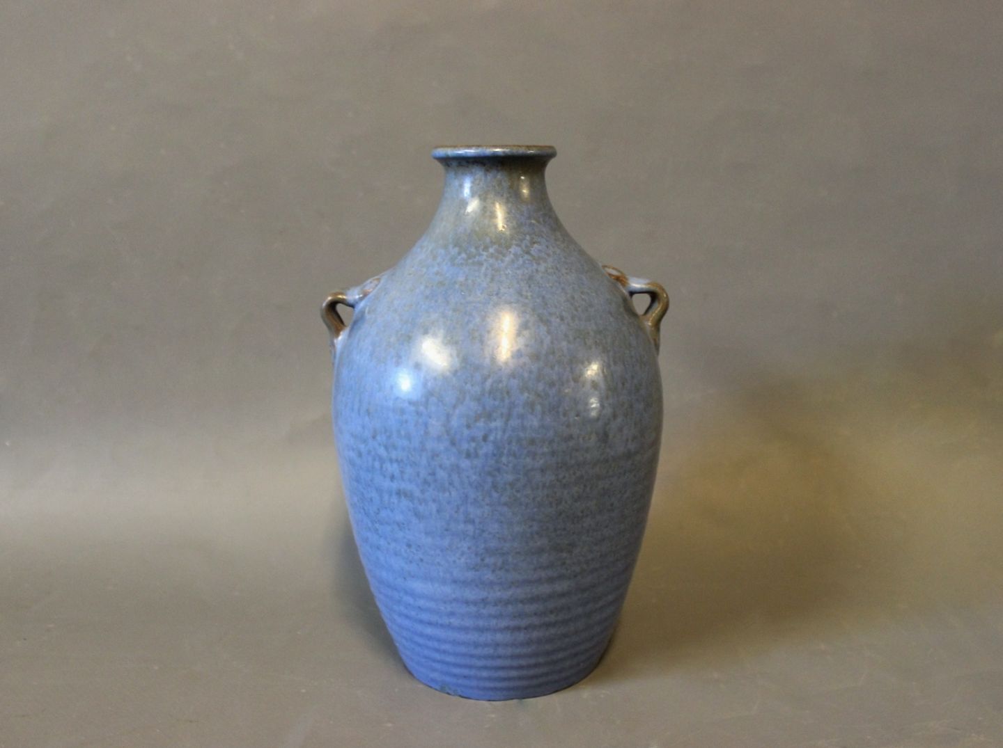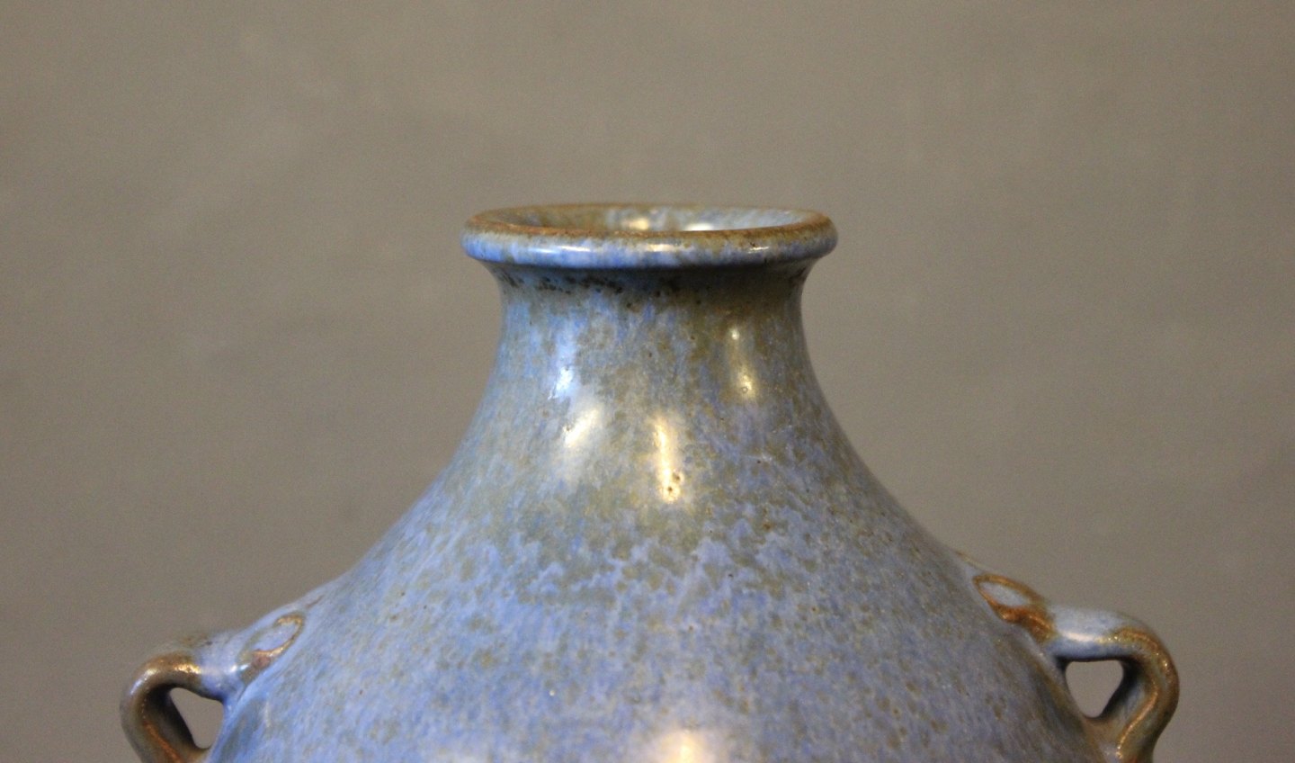 Light blue ceramic vase with small handles. The vase is in great vintage condition.