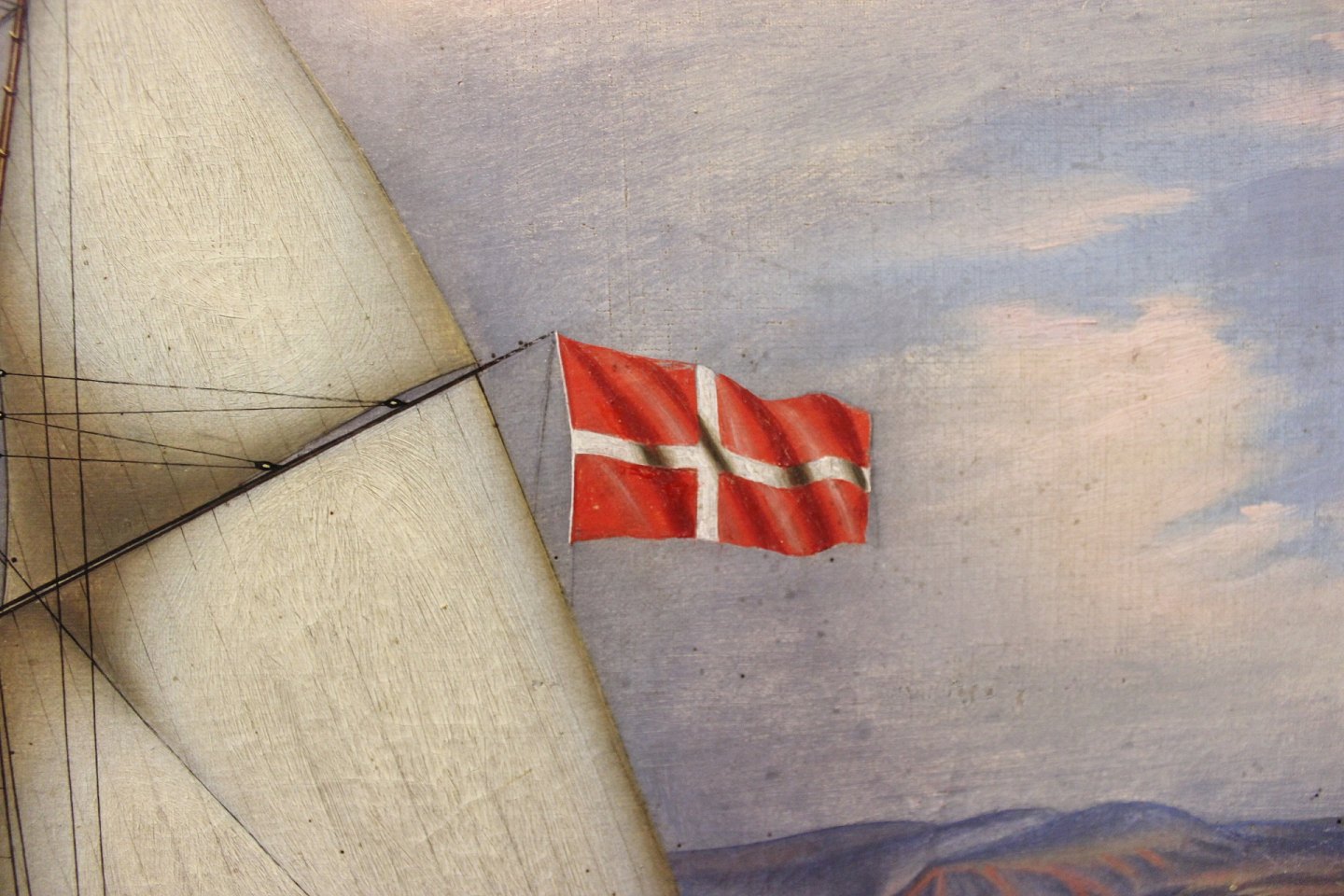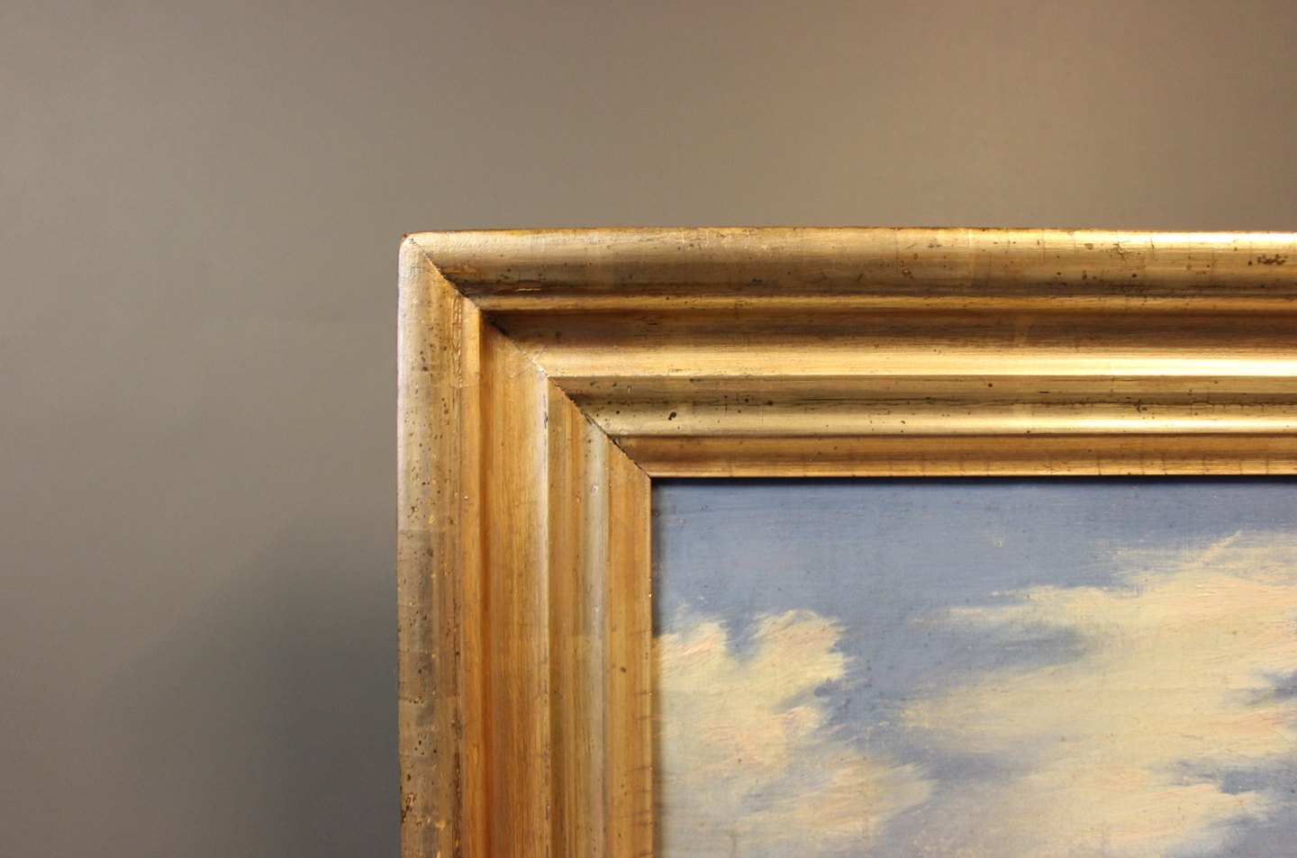 Oilpainting with motif of the danish ship "Vedele" from Vejle 1867 painted by the ship's Captain and with silver painted frame.