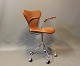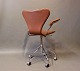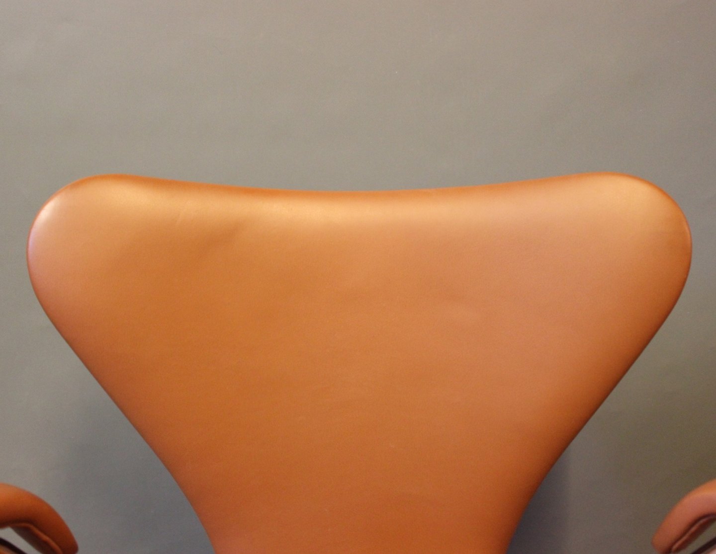 Sold"Seven" office chair, model 3217, with armrests and swivel function in cognac colored leather designed by Arne Jacobsen in the 1950s and manufactured by Fritz Hansen.