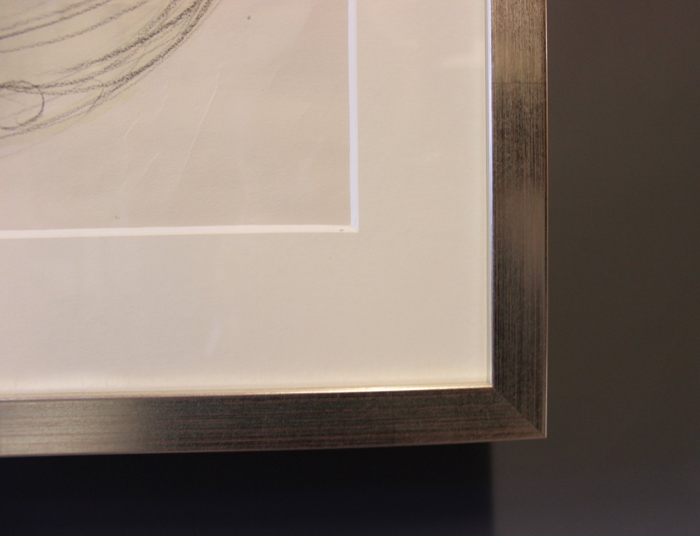 SoldLithographic print of lady with bird signed by Bjørn Wiinblad in silver frame.