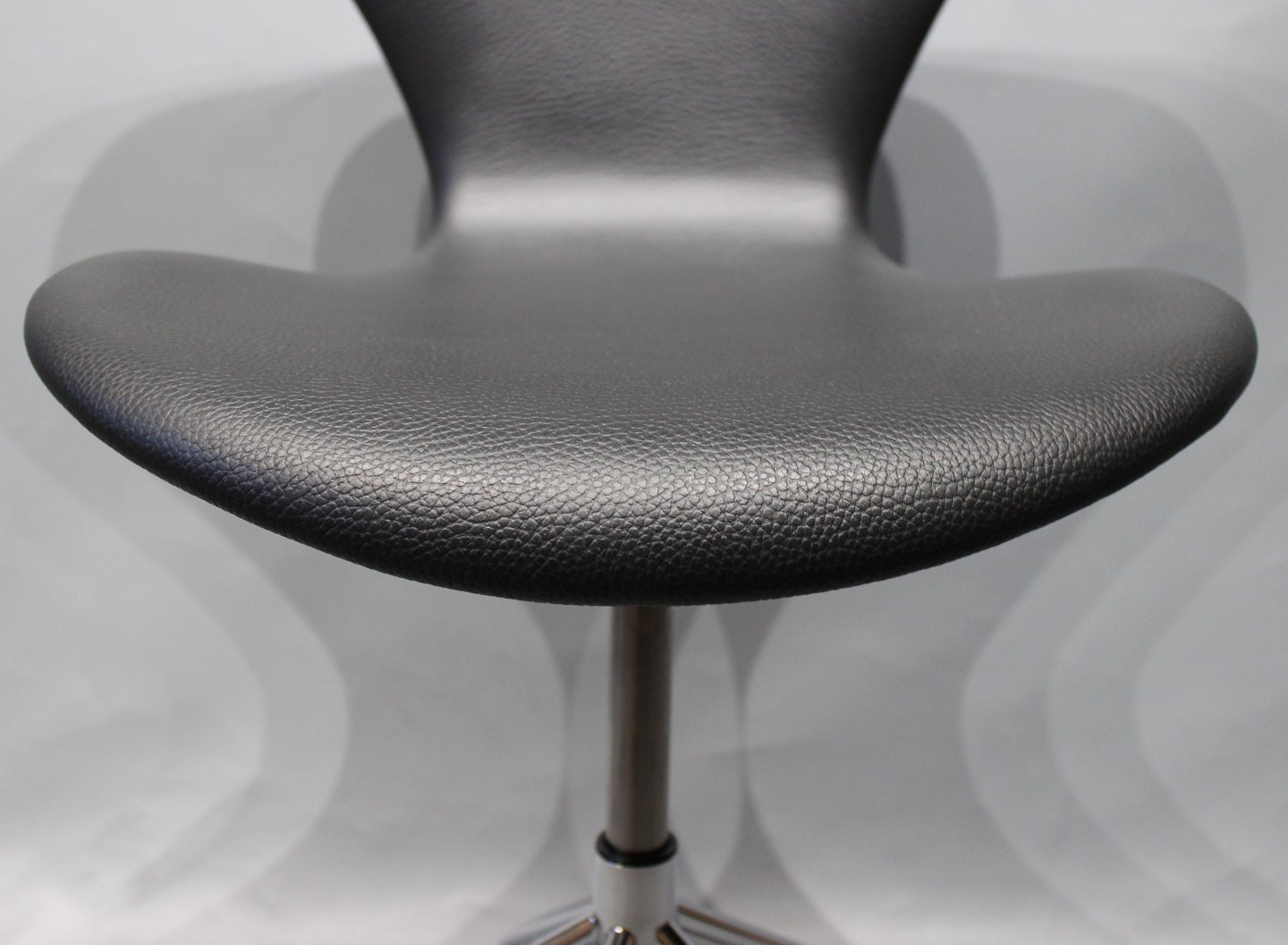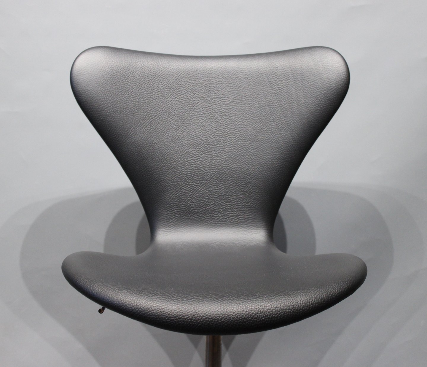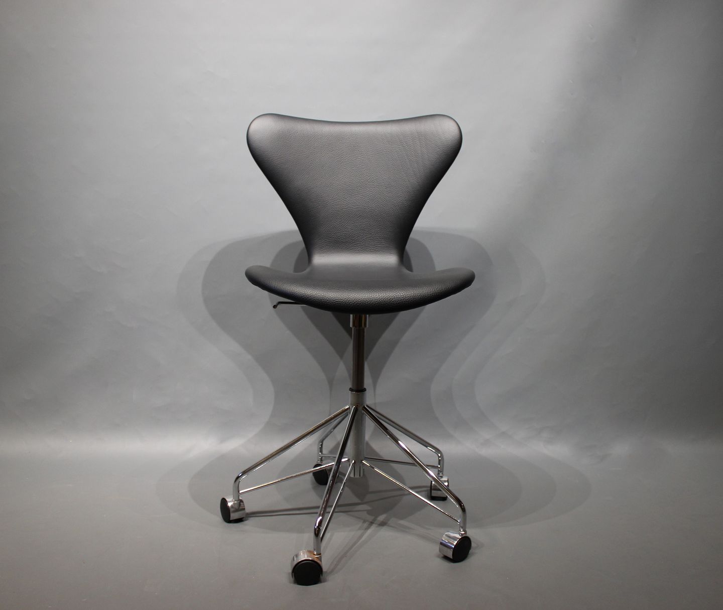 SoldSeven office chair, model 3117, in classic black leather designed by Arne Jacobsen and manufactured by Fritz Hansen in 2017.